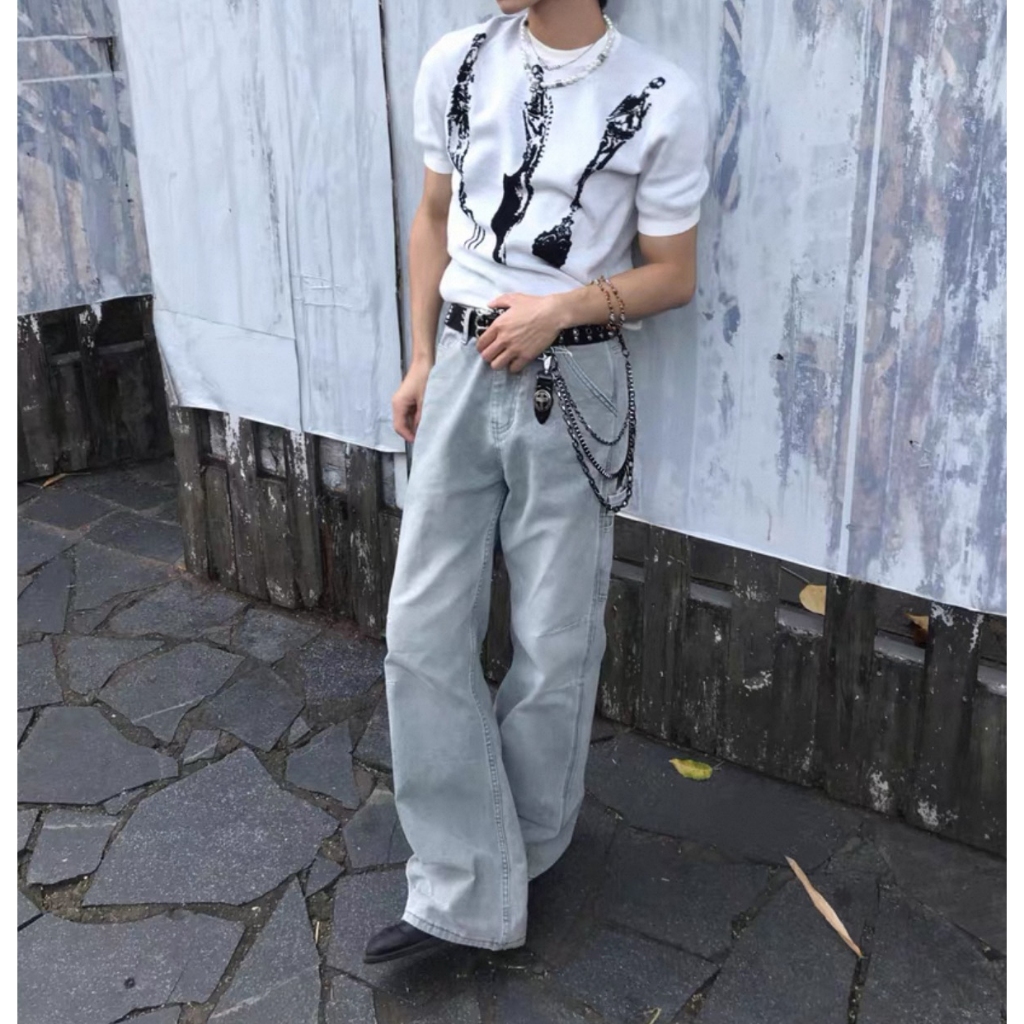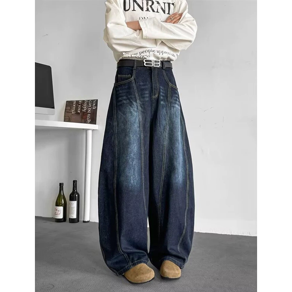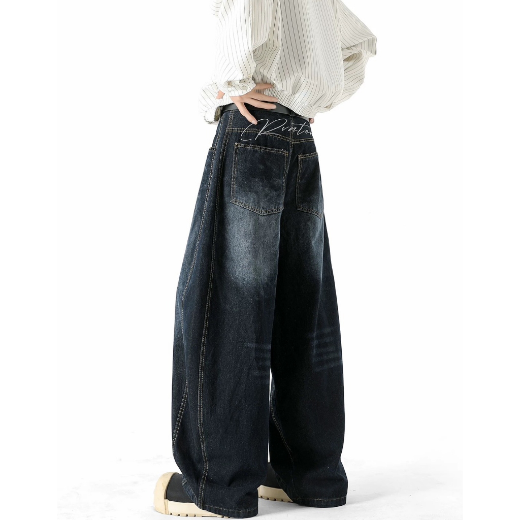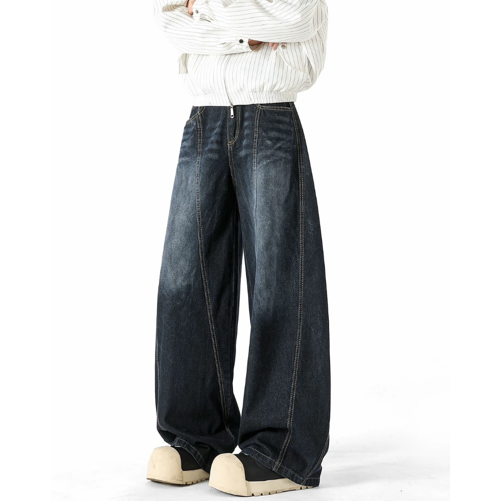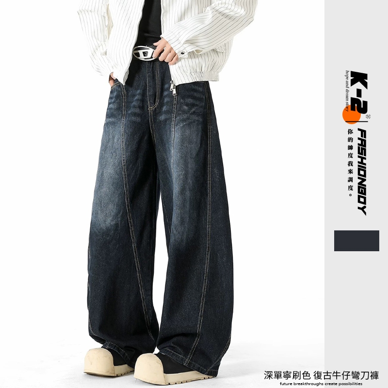 【K-2】復古單寧刷色 解構線條 牛仔彎刀褲 闊腿褲 寬褲 彎刀褲 長褲 褲子 穿搭 帥哥 K2 Y2K【JT1755】M|L|XL|XXLK-2 Fashionboy