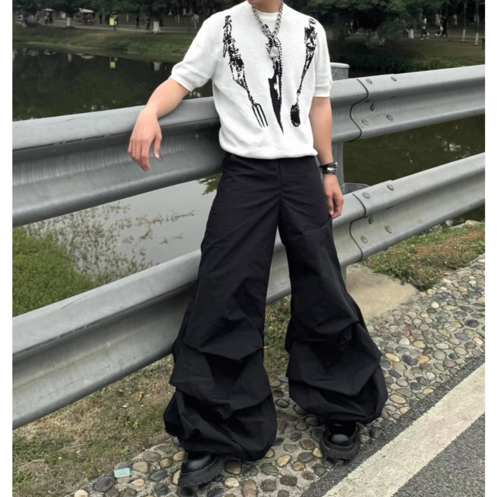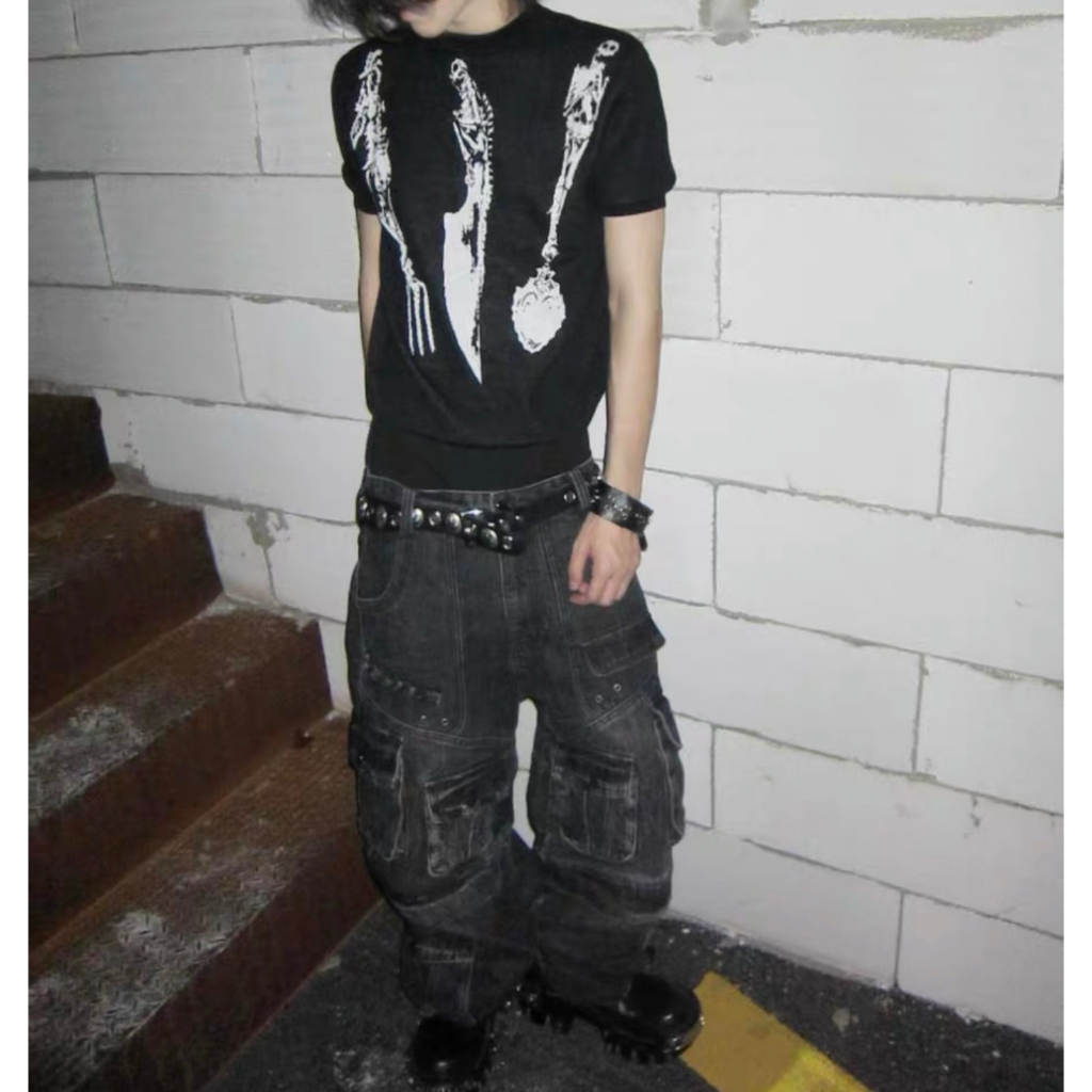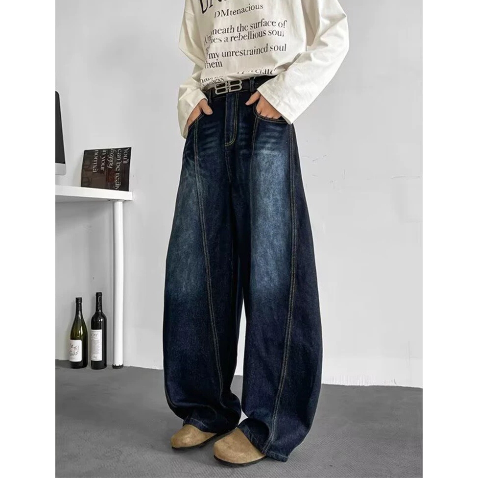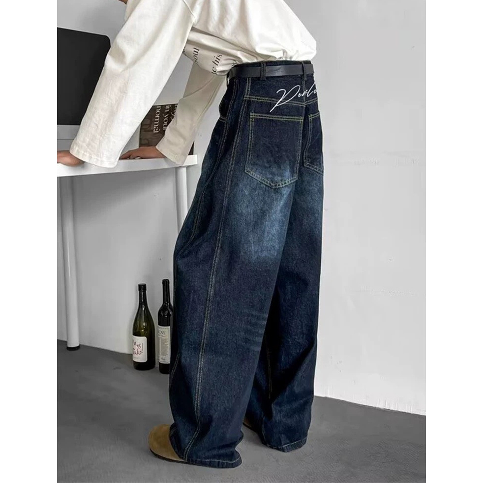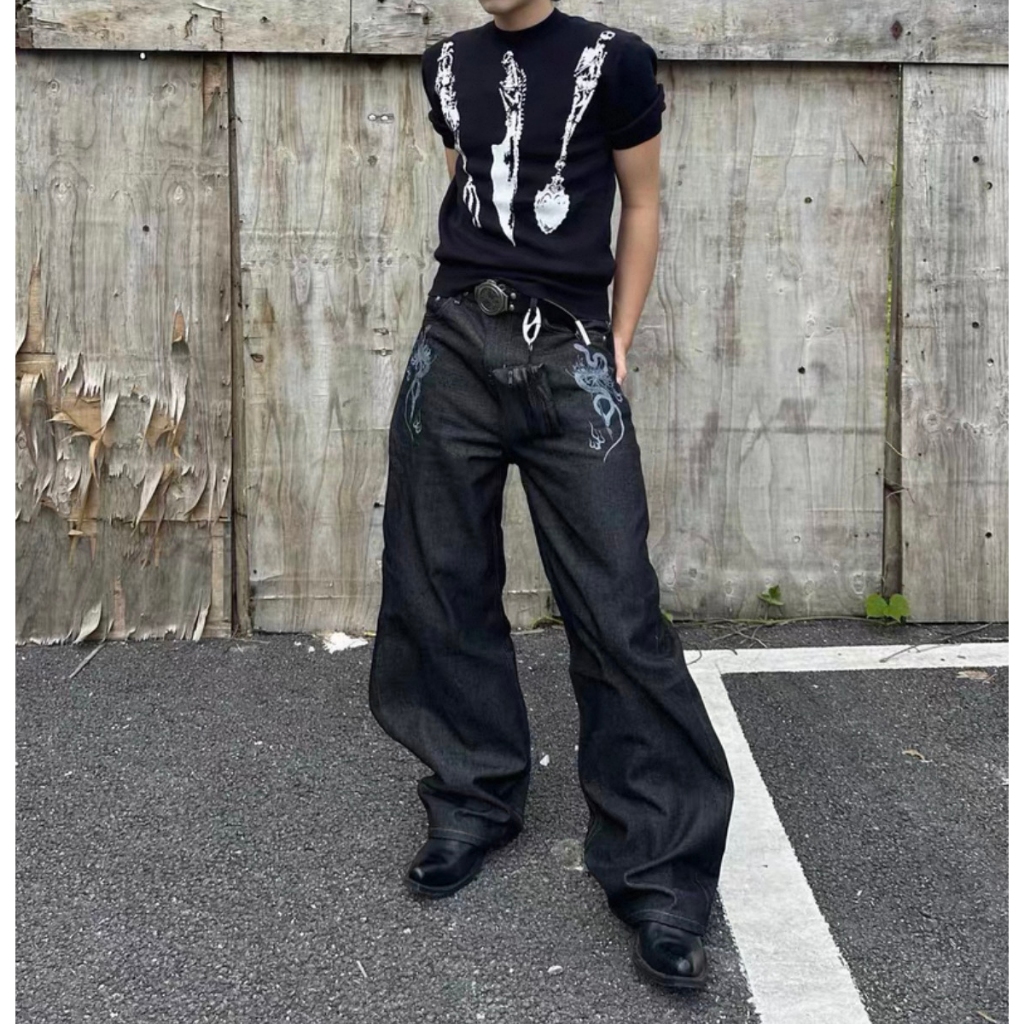 【K-2】復古單寧刷色 解構線條 牛仔彎刀褲 闊腿褲 寬褲 彎刀褲 長褲 褲子 穿搭 帥哥 K2 Y2K【JT1755】M|L|XL|XXLK-2 Fashionboy