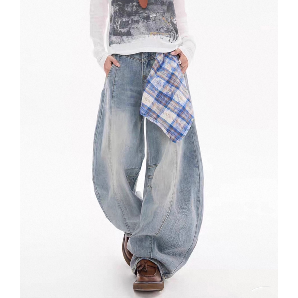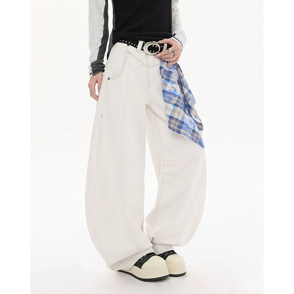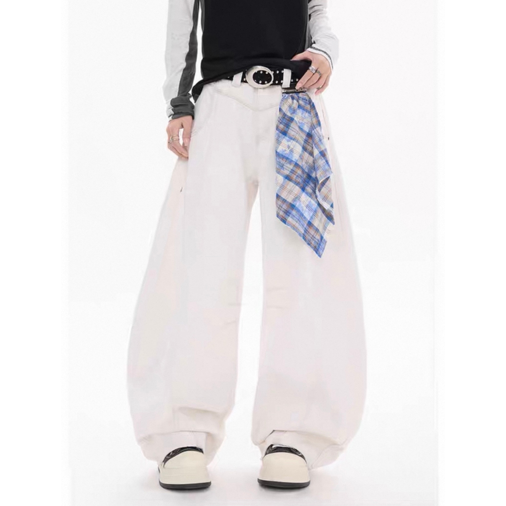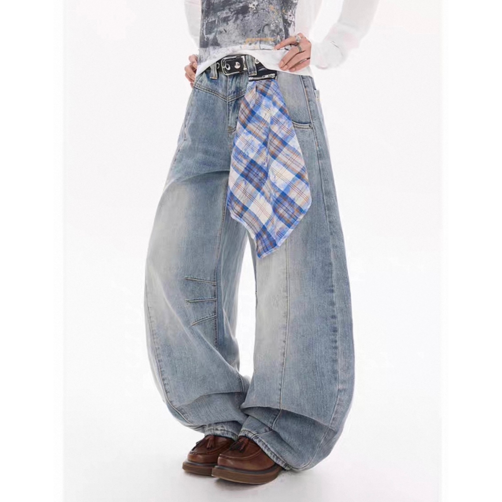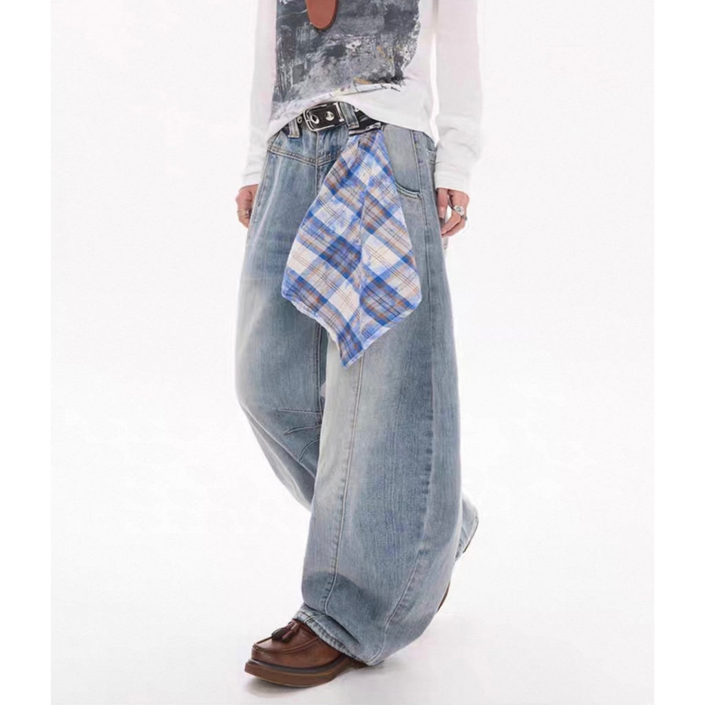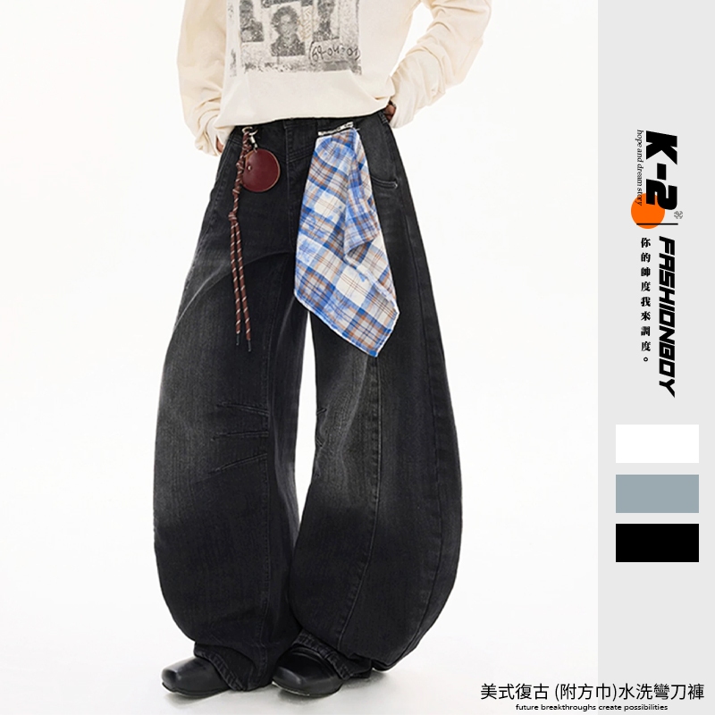 【K-2】美式復古 (附方巾) 解構線條 牛仔彎刀褲 闊腿褲 彎刀褲 牛仔褲 水洗長褲 牛仔長褲 長褲【JL9055】白色,M|白色,L|白色,XL|白色,XXL|藍色,M|藍色,L|藍色,XL|藍色,XXL|黑色,M|黑色,L|黑色,XL|黑色,XXLK-2 Fashionboy