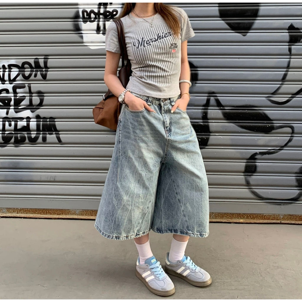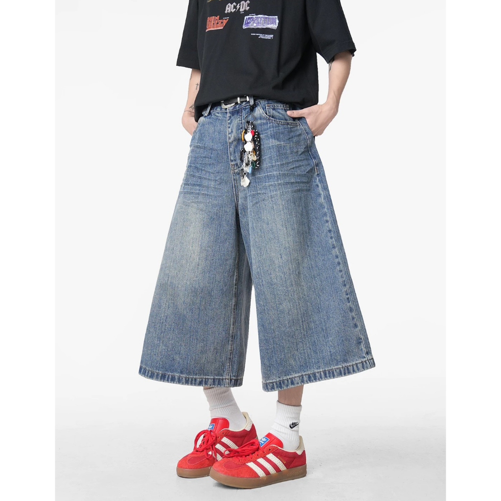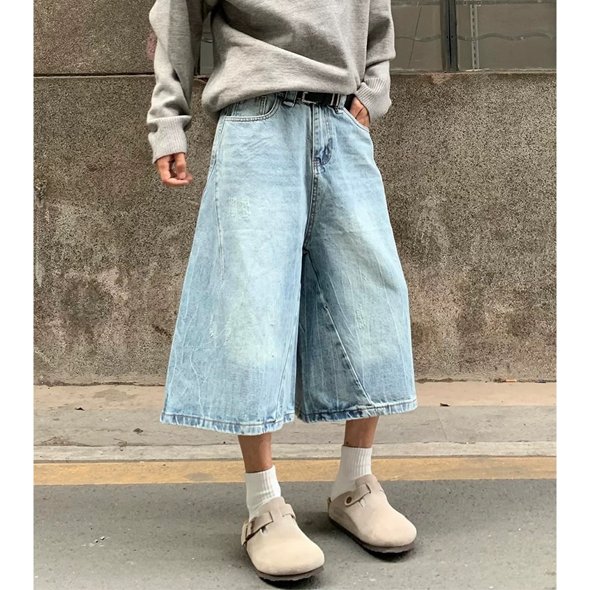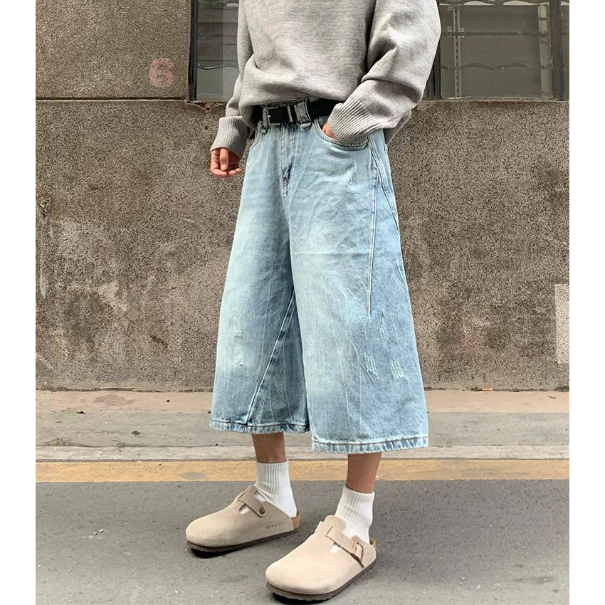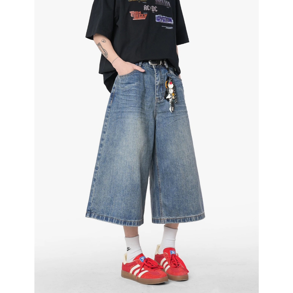 【K-2】美式復古 仿舊刷色 立體剪裁 七分牛仔褲 藍色 牛仔短褲 七分褲 短褲 褲子 Y2K 牛仔褲【J7621】M|L|XL|XXLK-2 Fashionboy