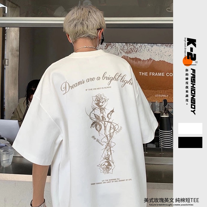 【K-2】美式玫瑰英文 印花短T 純棉 短袖 上衣 玫瑰 草寫英文 印花 美式休閒 Y2K K2 衣服【JDTK4】白色,M|白色,L|白色,XL|黑色,M|黑色,L|黑色,XLT-ShirtsK-2 Fashionboy