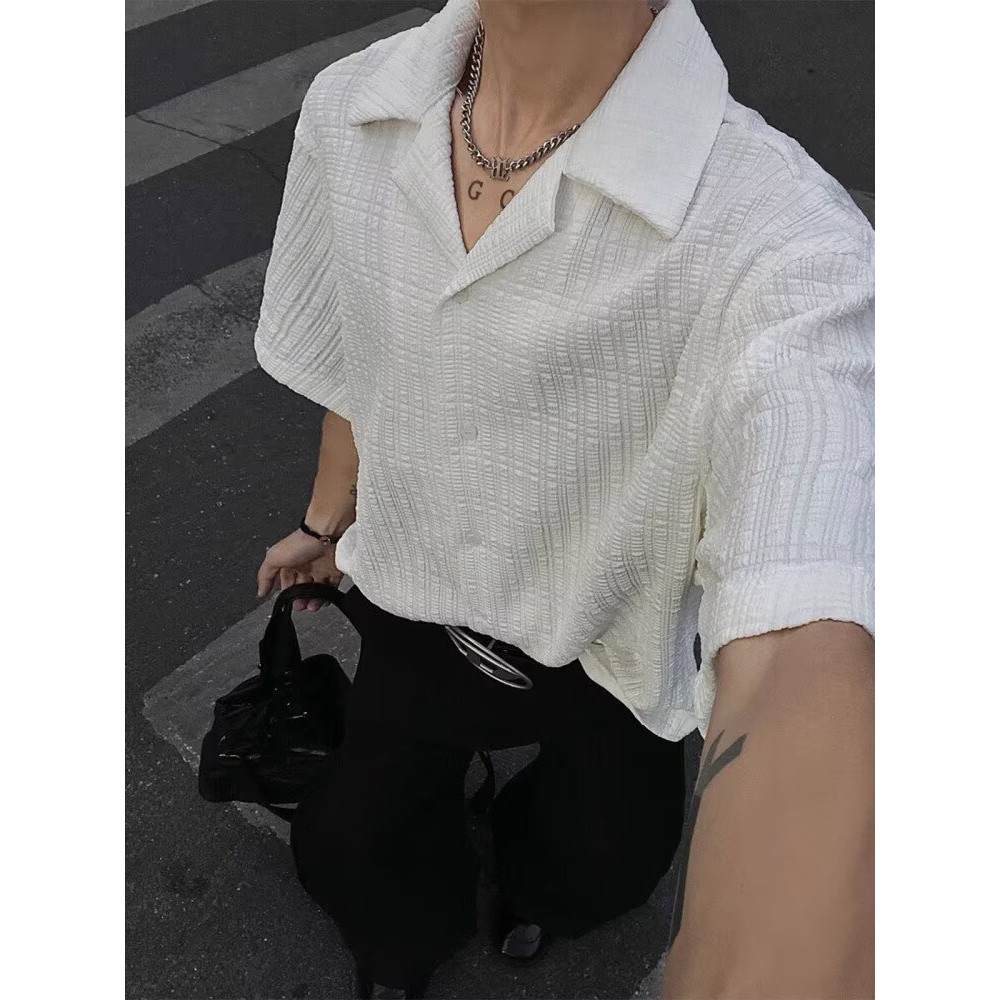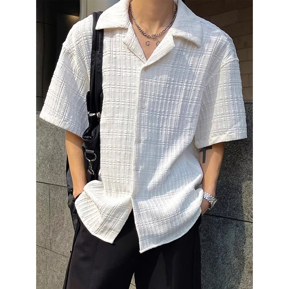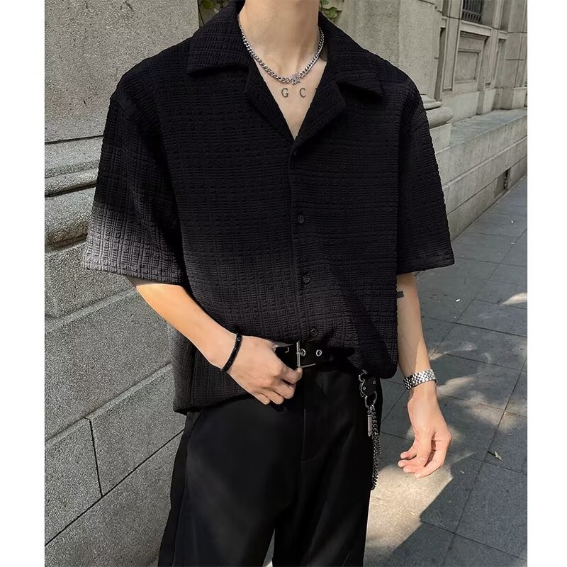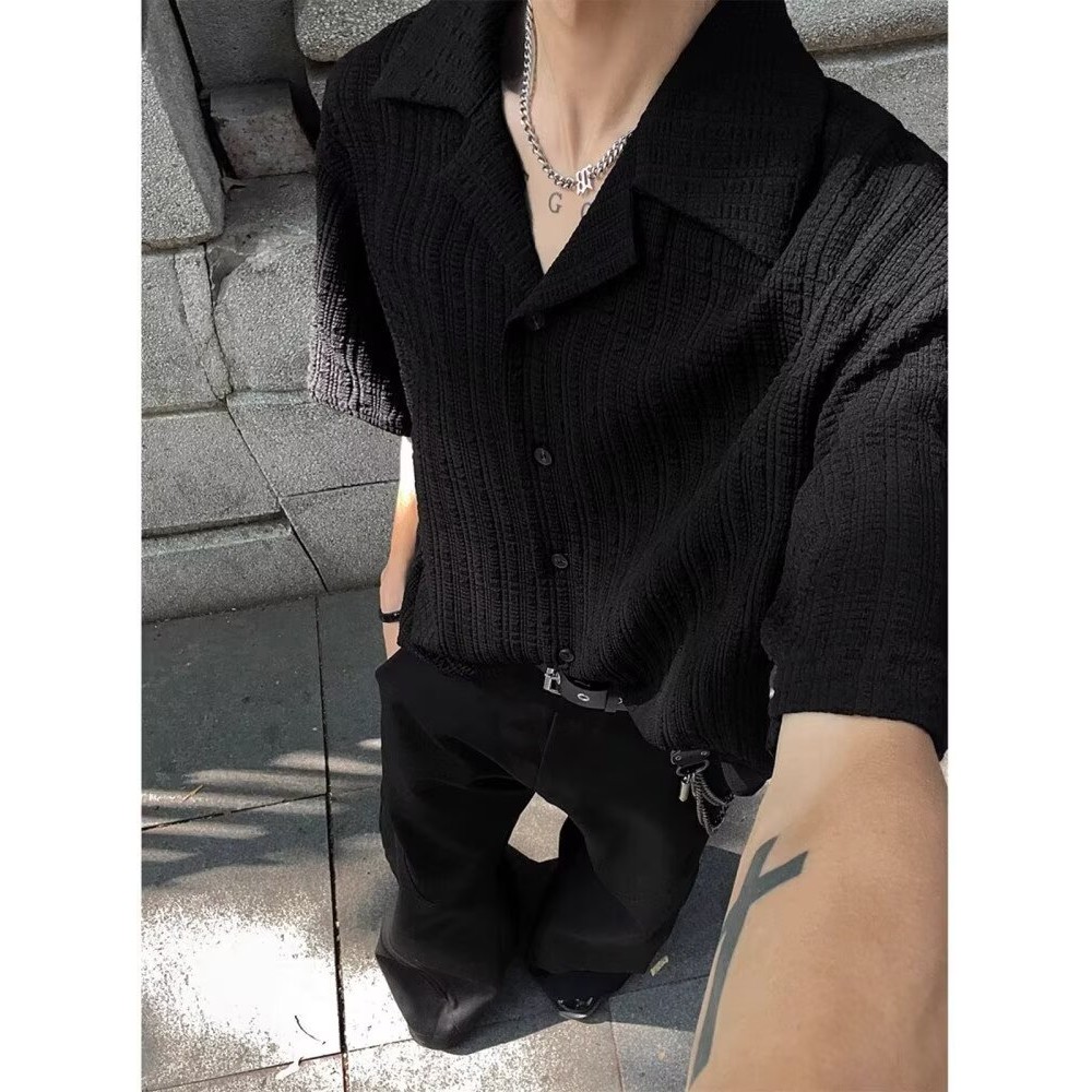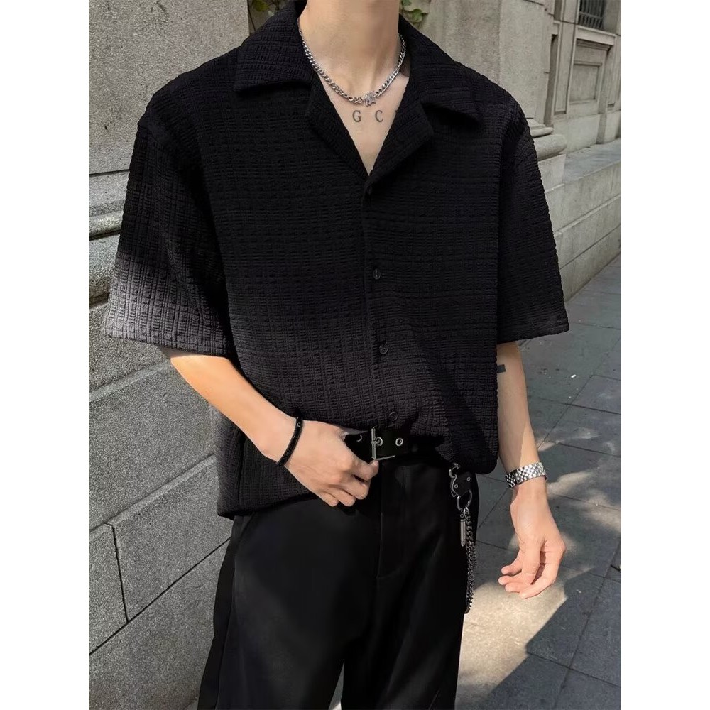 【HOT 本舖】男装 百搭肌理感提花短袖襯衫男夏季潮牌痞帥高級感休閒男裝古巴領襯衣黑色,L|黑色,XL|黑色,2XL|黑色,3XL|米白色,M|米白色,L|米白色,XL|米白色,2XL|米白色,3XL|黑色,MShirtsHOT本舖|男裝館