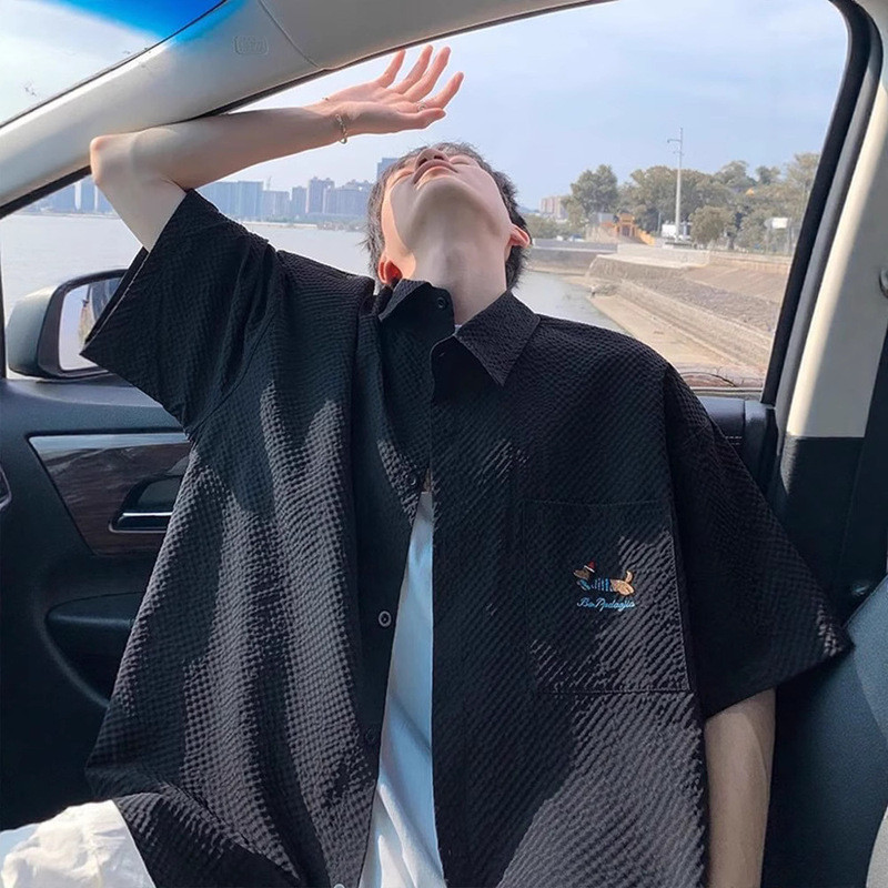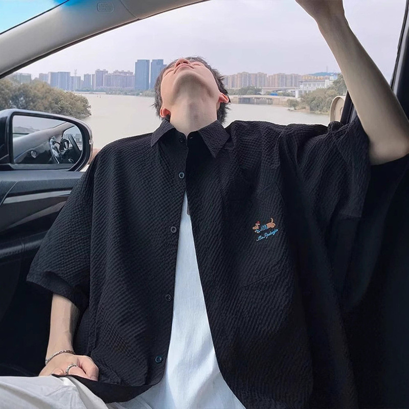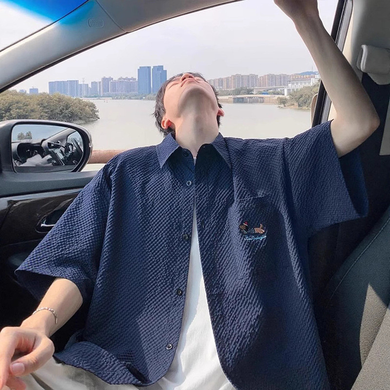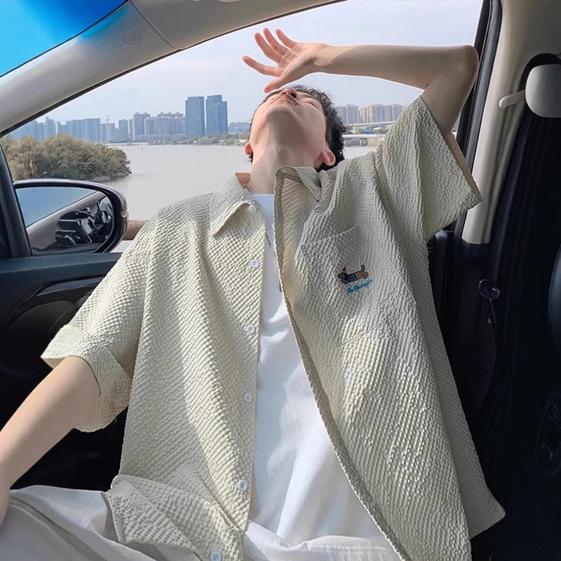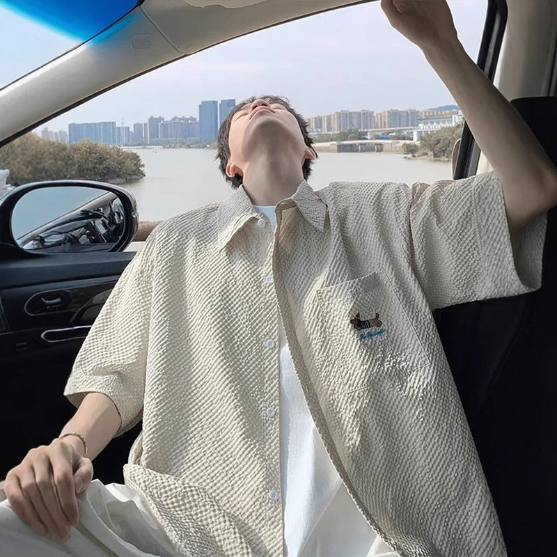 【HOT 本舖】男装泡泡紗速干短袖襯衫男夏季薄款臘腸狗刺繡翻領襯衣青少年半袖外套黑色,M|黑色,L|黑色,XL|黑色,XXL|黑色,XXXL|藏青色,M|藏青色,L|藏青色,XL|藏青色,XXL|藏青色,XXXL|杏色,M|杏色,L|杏色,XL|杏色,XXL|杏色,XXXLShirtsHOT本舖|男裝館