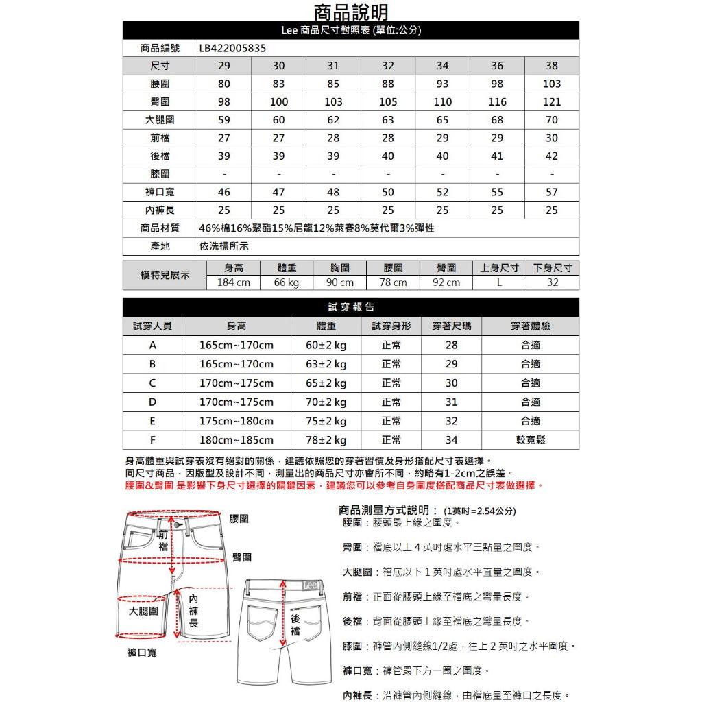 Lee 902 涼感 彈性牛仔短褲 男 中藍 LB32200787829|30|31|32|34|36Lee Jeans 品牌旗艦店
