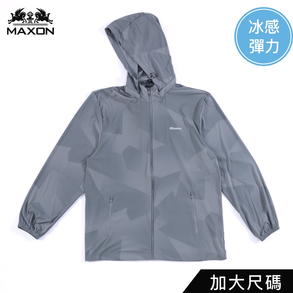 【MAXON大尺碼】2L~5L灰色輕薄冰感高彈力活動帽薄外套89349-83客訂深藍4L|2L|3L|4L|5LJacketsMAXON馬森大尺碼專賣