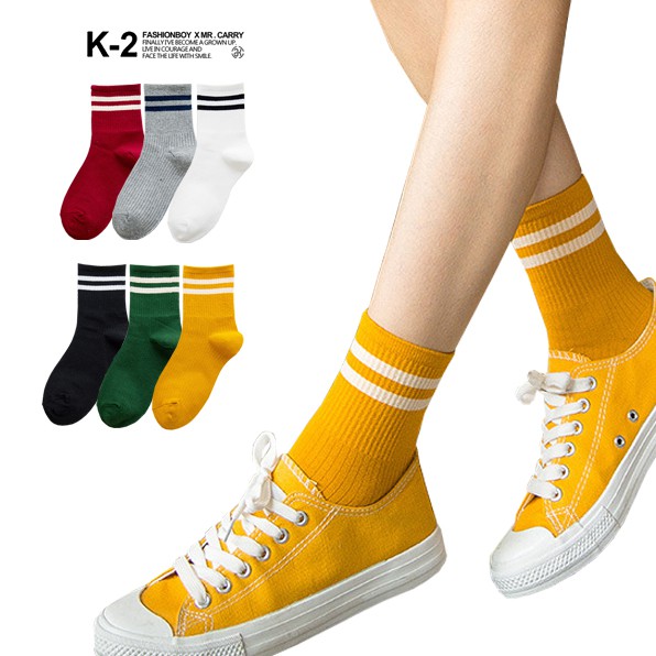 【K-2】萬年百搭 素色 條紋襪 搭配 穿搭 襪子 中筒襪 高筒襪 百搭 男女不拘 38-43【E-B0051】黃色|紅色|黑色|綠色|灰色|白色K-2 Fashionboy