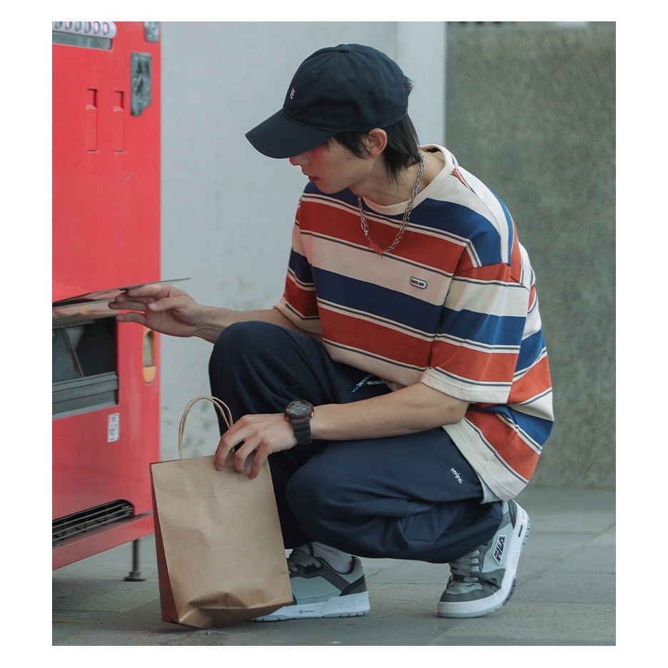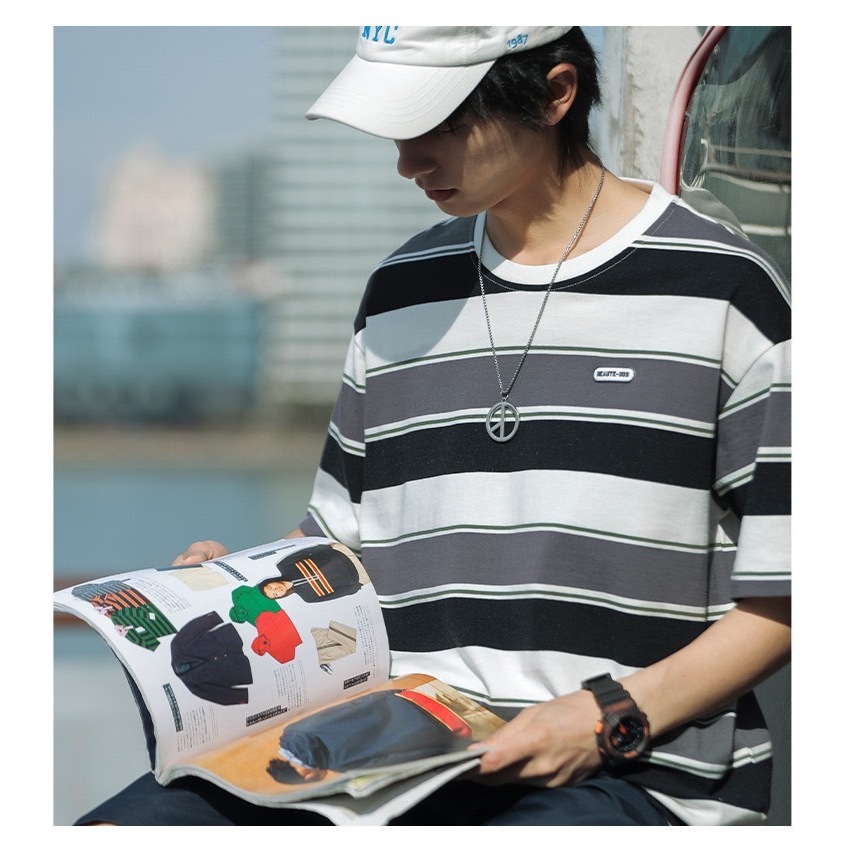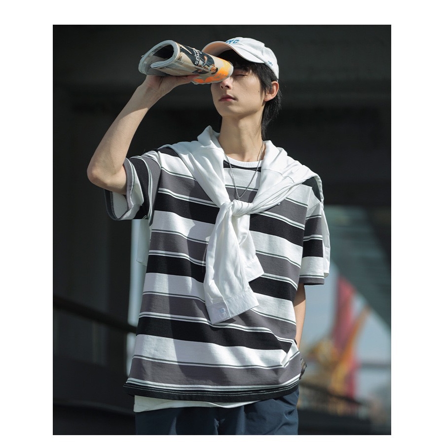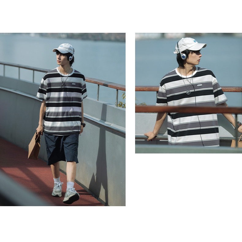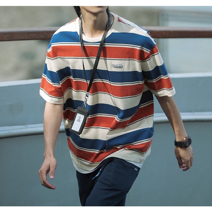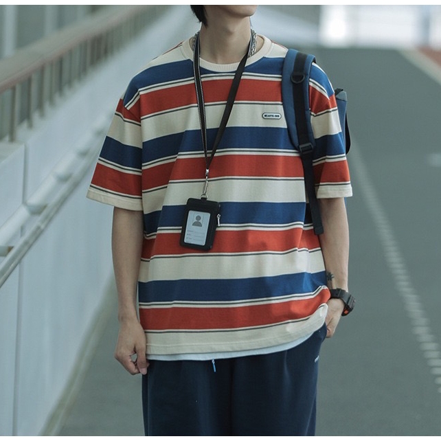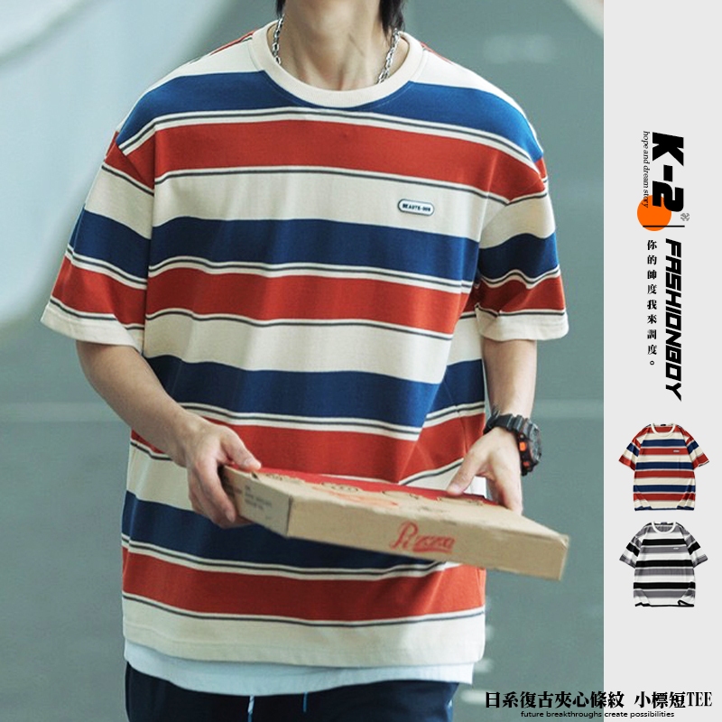 【K-2】日系復古 夾心條紋 BEAUTE-OUS 橡膠小標 螺紋T 條紋短T 復古 條紋 短袖 落肩【WJ1627】黑白色,L|黑白色,XL|黑白色,XXL|紅藍色,L|紅藍色,XL|紅藍色,XXLT-ShirtsK-2 Fashionboy