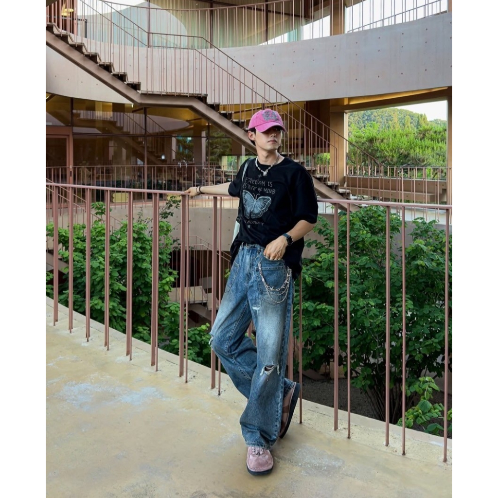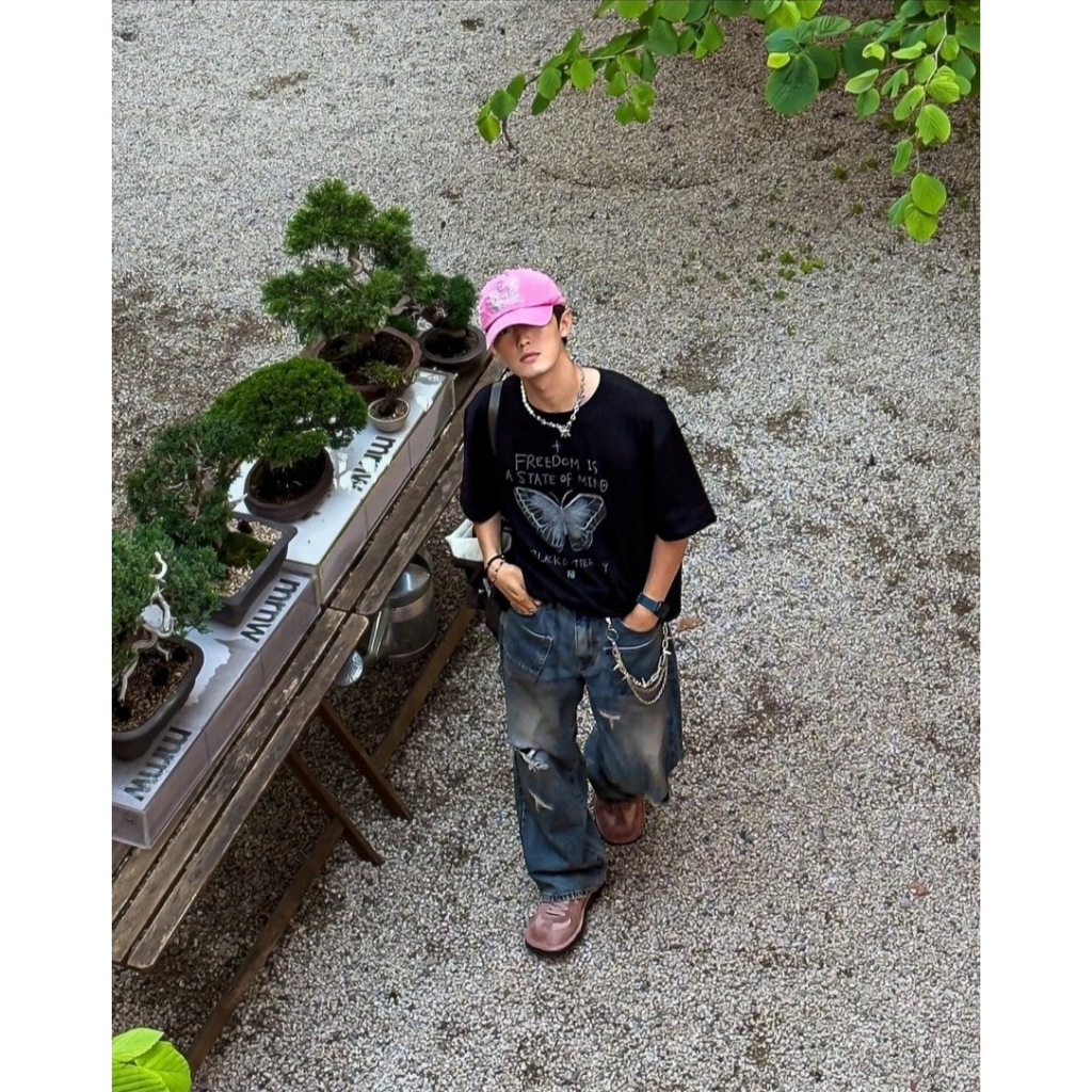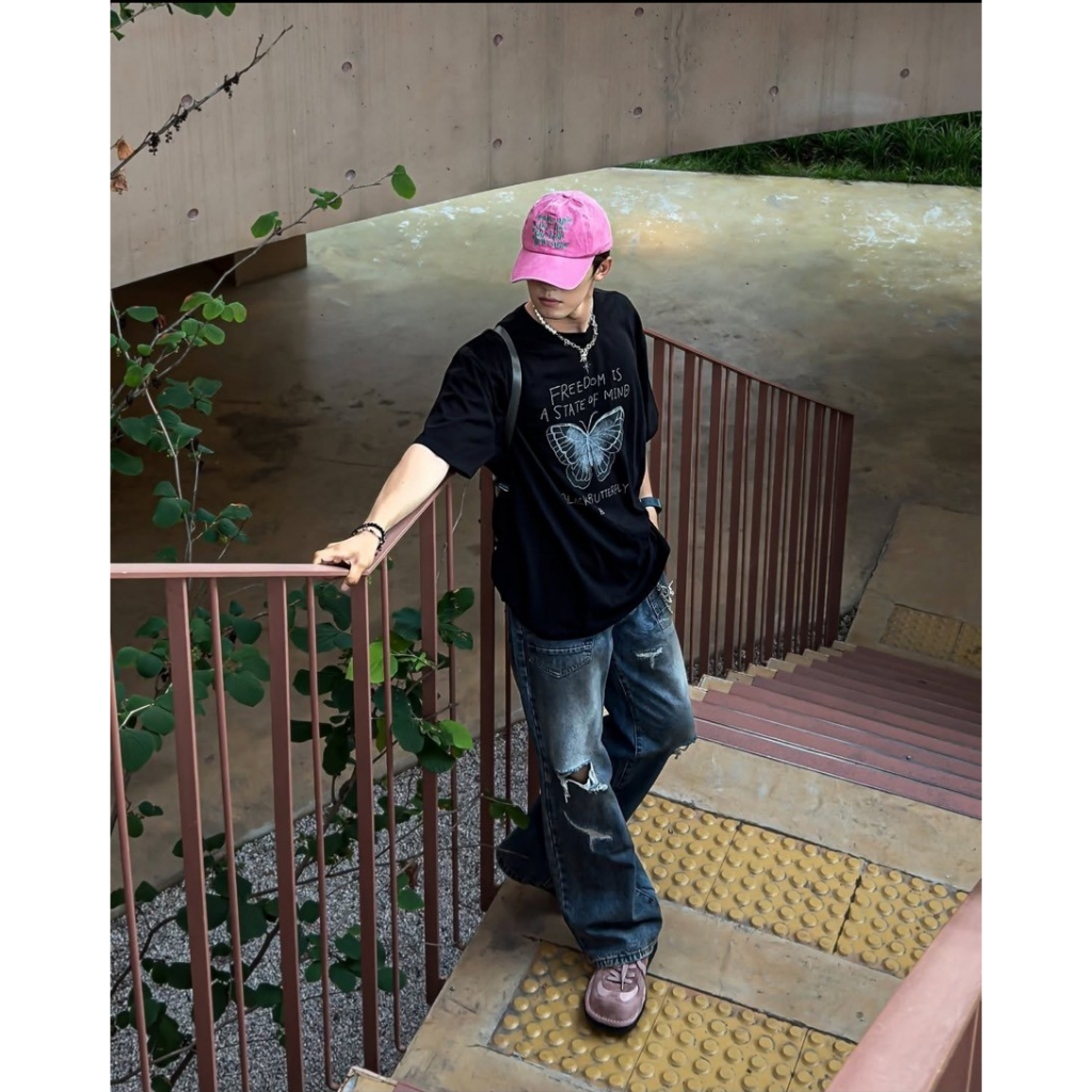【K-2】手繪蝴蝶 塗鴉 可愛字體 美式寬鬆短T 短袖 上衣 落肩 寬鬆 短T Y2K K2 親膚 情侶【K2707】白色|黑色T-ShirtsK-2 Fashionboy
