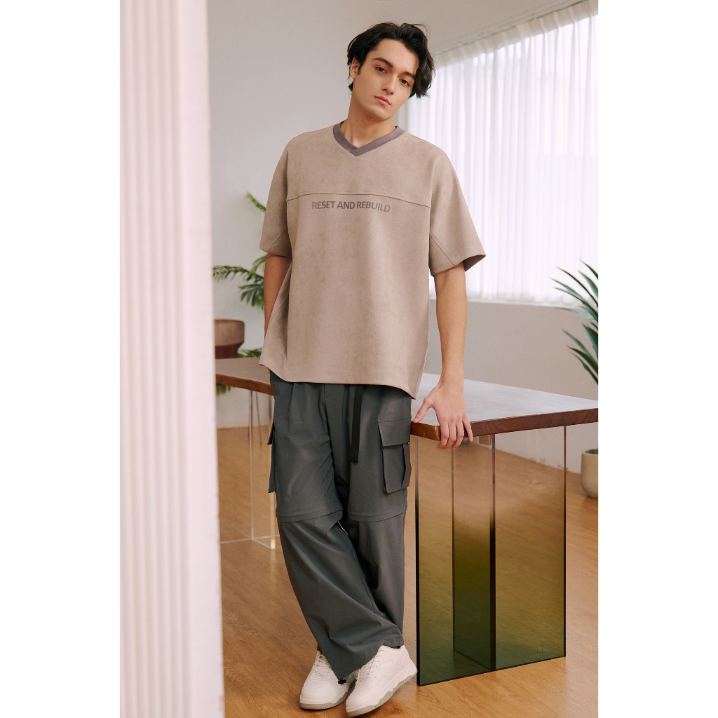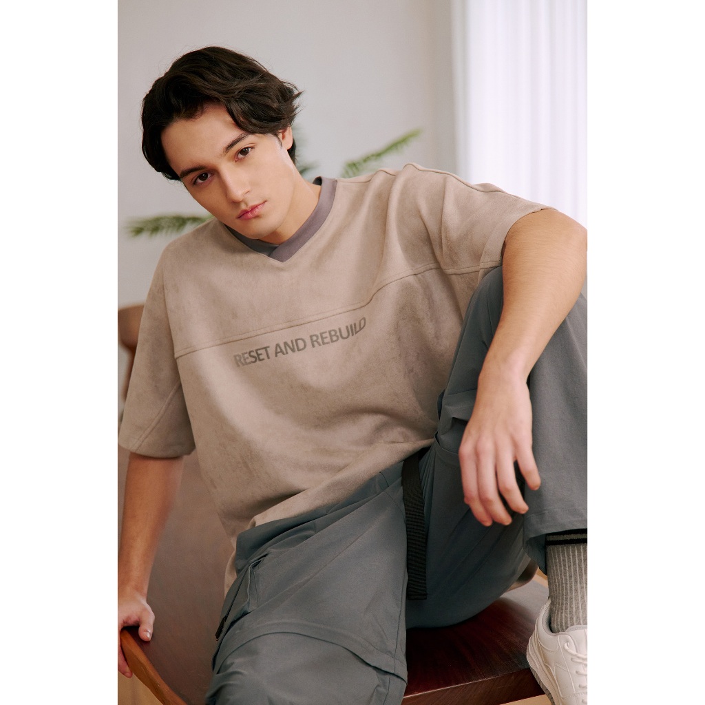 PREMIUM 麂皮文字短袖上衣-No.11354深灰,S-M|深灰,L-XL|石灰,S-M|石灰,L-XLT-ShirtsLife8 米斯特國際 品牌旗艦店