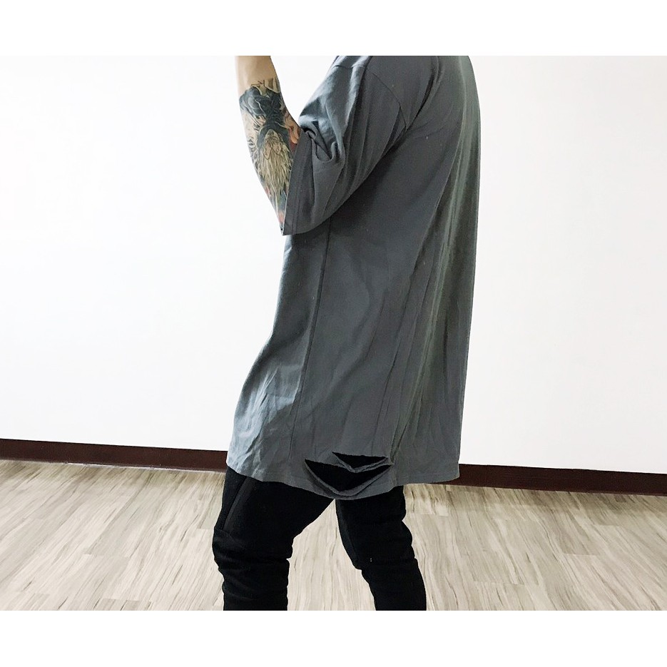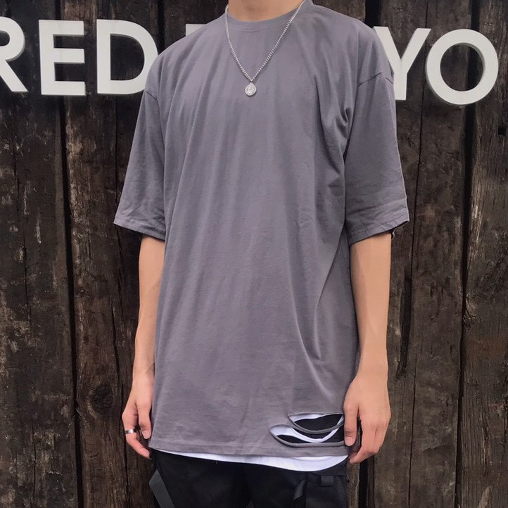 【K-2】韓國 CITYBOY 長板破壞短T OVERSIZE 寬鬆 長版 素T 內搭 素面 短T 刀割 破T【K82】白色|黑色|深灰色T-ShirtsK-2 Fashionboy