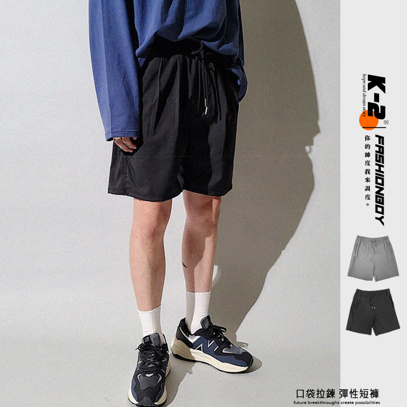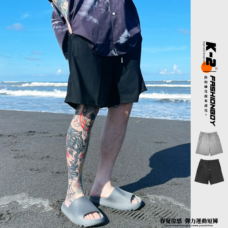 【K-2】春夏涼感 彈力短褲 口袋拉鍊 運動短褲 機能 彈性 涼感 短褲 健身 冰感A級 休閒短褲 冰磁【K22111】灰色,M|灰色,L|灰色,XL|黑色,M|黑色,L|黑色,XLK-2 Fashionboy