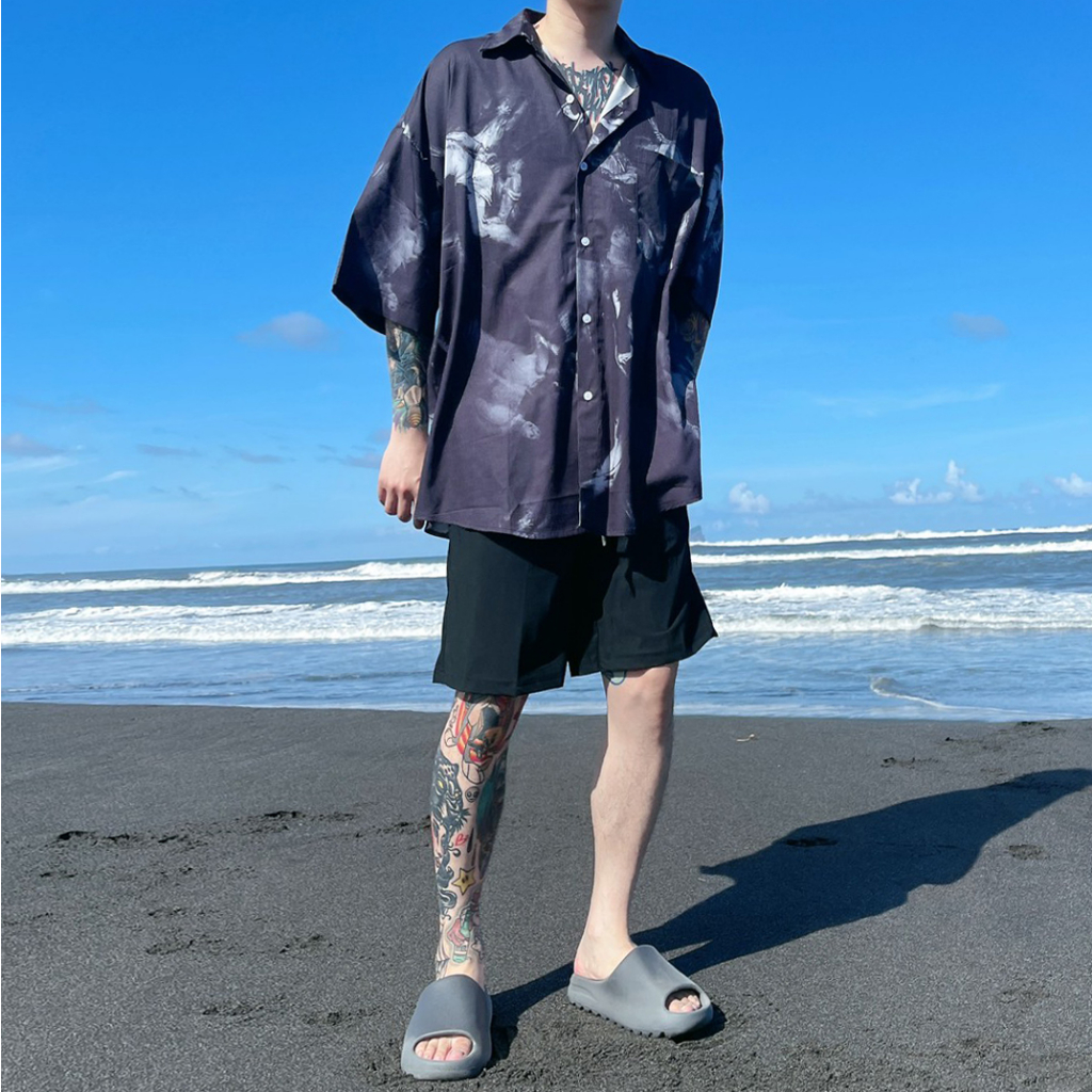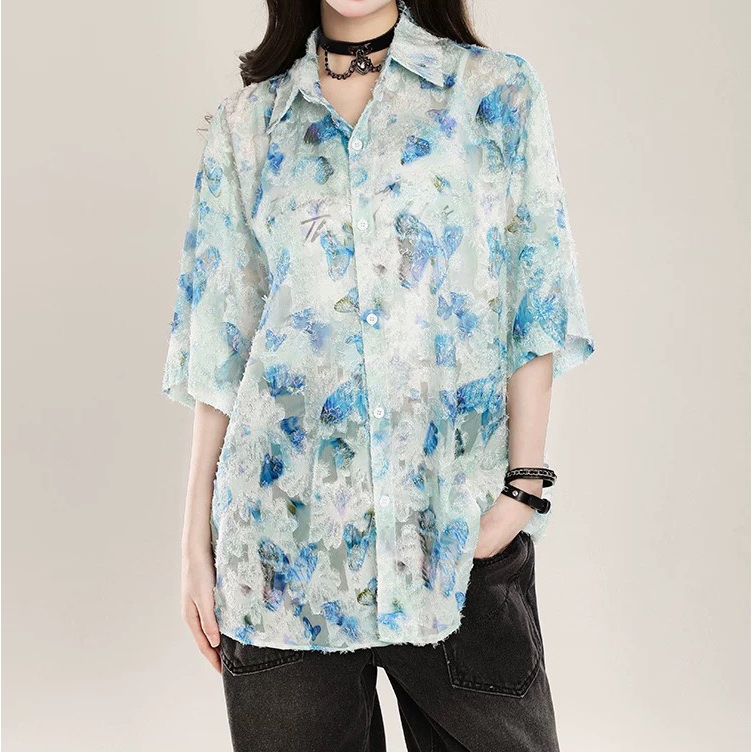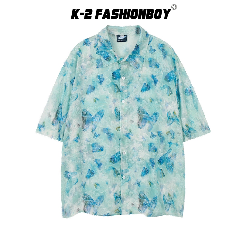 【K-2】滿版 春夏天 蝴蝶翩翩 藍色蝴蝶 花蝴蝶 短袖襯衫 穿搭 男女不拘 海邊 衝浪 出遊【JJ8815】M|L|XLShirtsK-2 Fashionboy