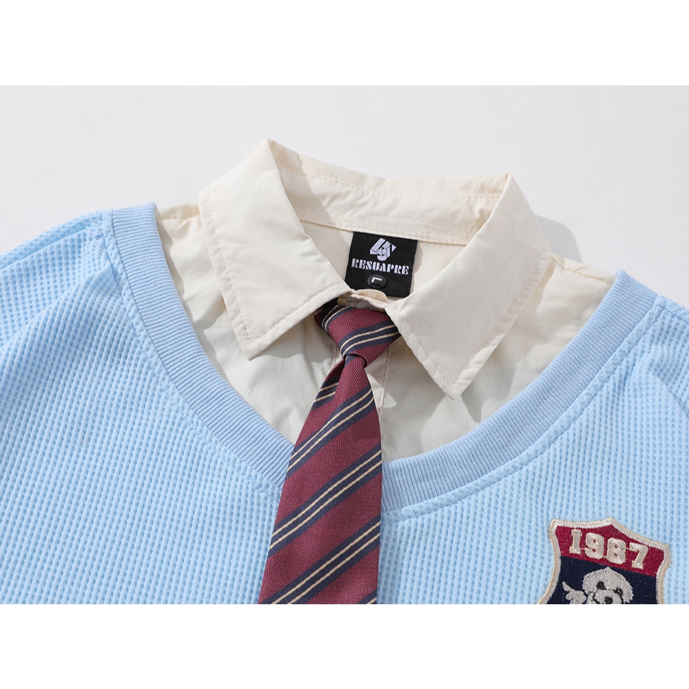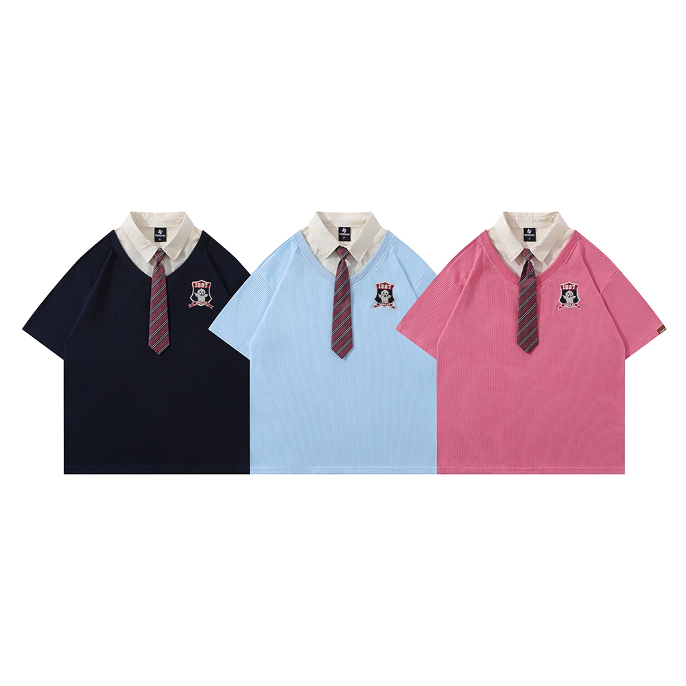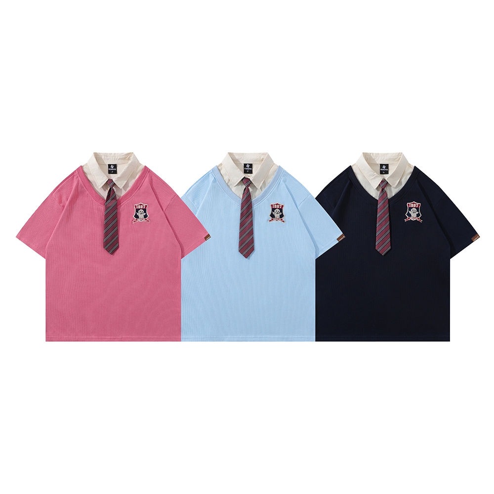 【K-2】假兩件 1987 領帶 造型 翻領 襯衫 短袖上衣 設計感 穿搭 短T 男女不拘 休閒 文青【H911】黑色,M|黑色,L|黑色,XL|藍色,M|藍色,L|藍色,XL|粉色,M|粉色,L|粉色,XLPolo ShirtsK-2 Fashionboy