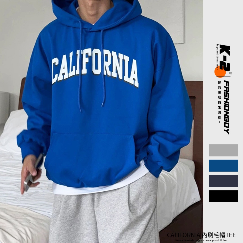 【K-2】CALIFORNIA 美式設計 陰影 簡約 LOGO 內刷毛 寬鬆帽T 牛奶絨 刷毛帽T 銀狐絨【w73】克萊因藍,M|克萊因藍,L|灰色,M|灰色,L|黑色,M|黑色,L|藏青色,M|藏青色,LHoodiesK-2 Fashionboy