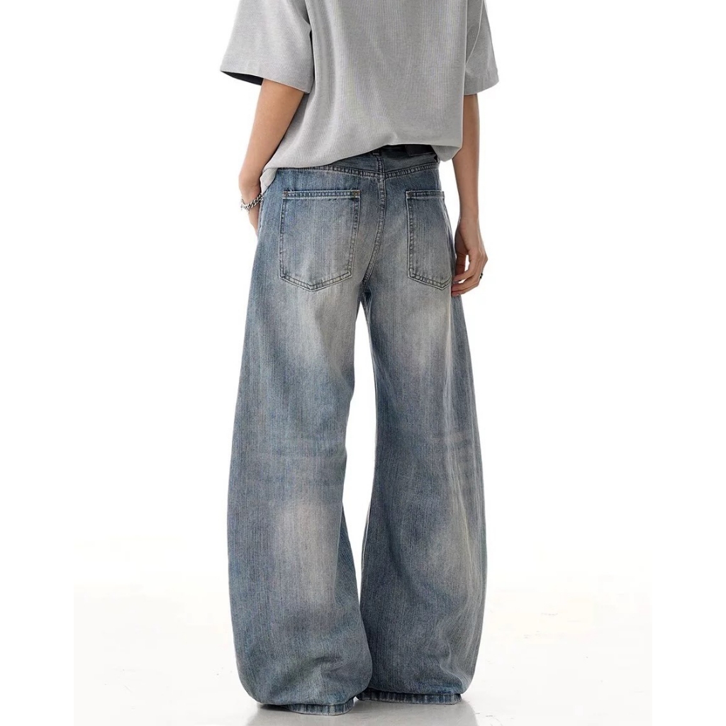 【K-2】美式街頭 三角破壞 刀割 鬚破 牛仔彎刀褲 牛仔褲 闊腿褲 彎刀褲 破褲 牛仔長褲 褲子 復古【J7840】M|L|XL|XXLK-2 Fashionboy