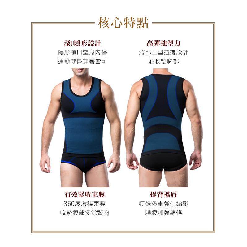 【Charmen】竹炭工型交叉挺背束胸背心 | 男性塑身衣 收腹挺背 男內著 (台灣24h出貨)