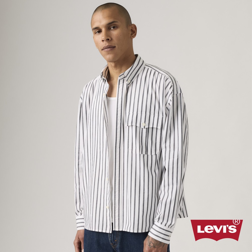 Levi’s® 長袖襯衫 牛津襯衫 灰白條紋襯衫 男生上衣 人氣新品 004GC-0002XS|S|M|LShirtsLevi’s官方旗艦店