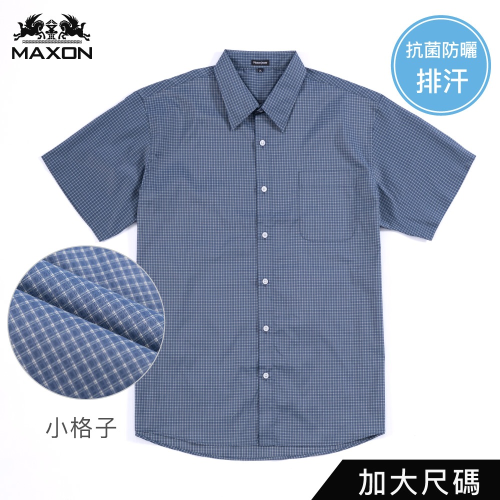【MAXON大尺碼】台灣製2L~5L藍格彈性吸濕排汗抗菌防曬格子襯衫81402-582L|3L|4LShirtsMAXON馬森大尺碼專賣