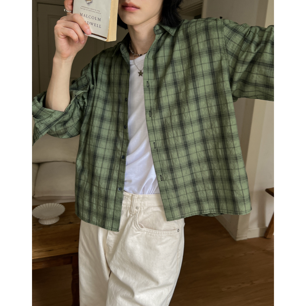 【Metanoia】🇰🇷韓製 短版格紋襯衫綠色,F|藍色,F|灰色,FShirtsMetanoia 正韓服飾 & MdoC 總代理