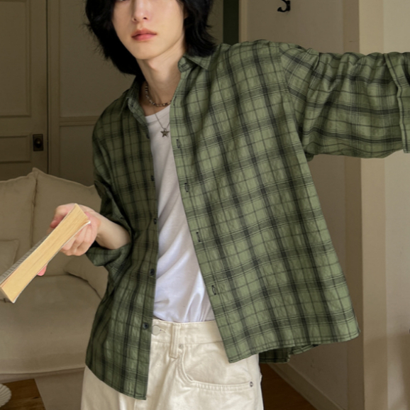 【Metanoia】🇰🇷韓製 短版格紋襯衫