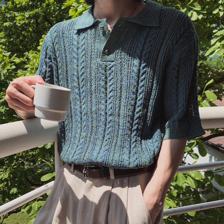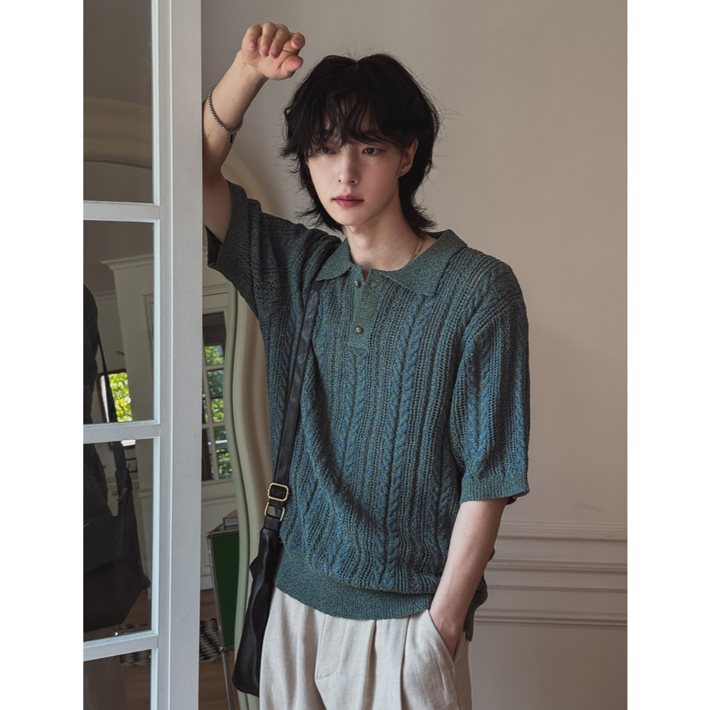 【Metanoia】🇰🇷韓製 翻領麻花針織短袖