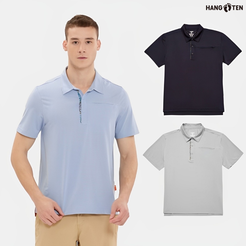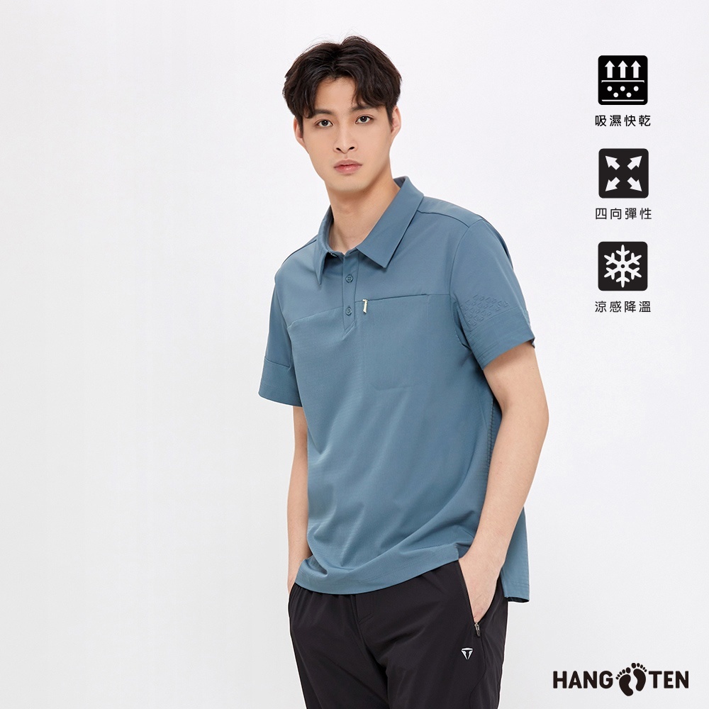 【Hang Ten】男裝-恆溫多功能-涼感四面彈吸濕快乾口袋短袖POLO衫(松石綠)M|L|XLPolo ShirtsHANG TEN 官方旗艦館