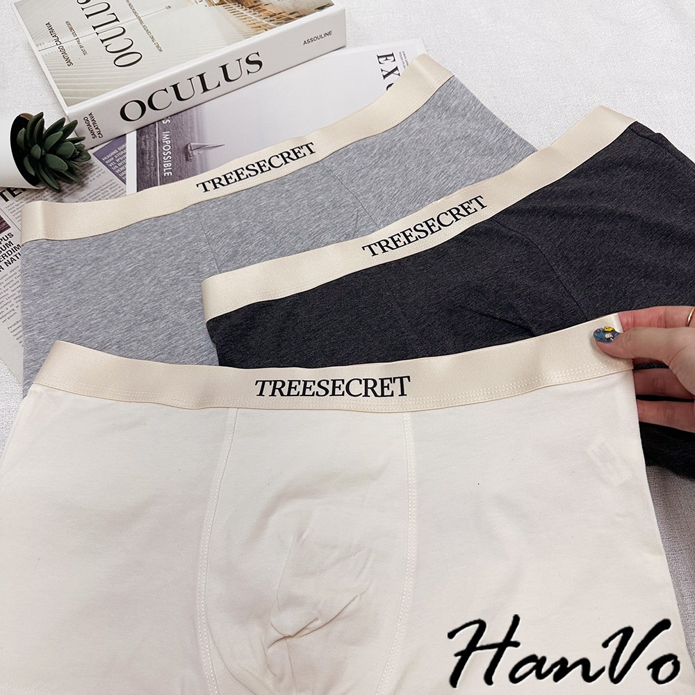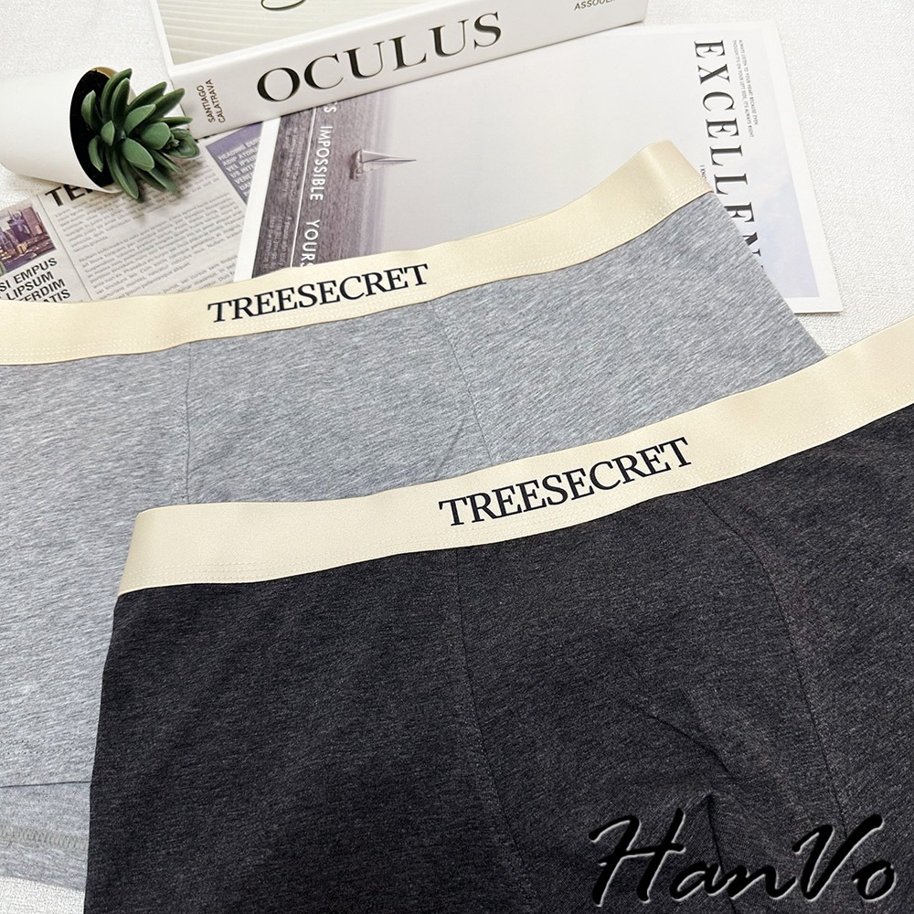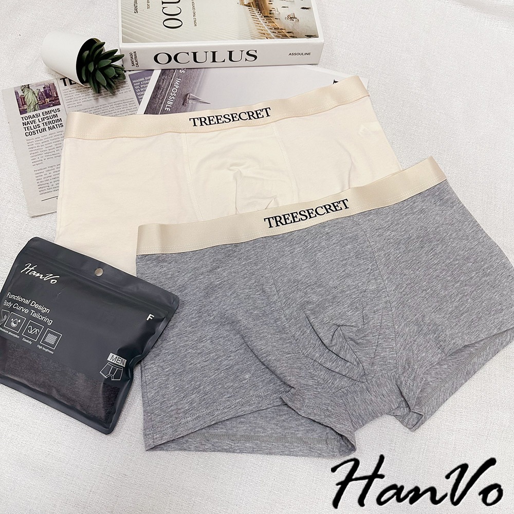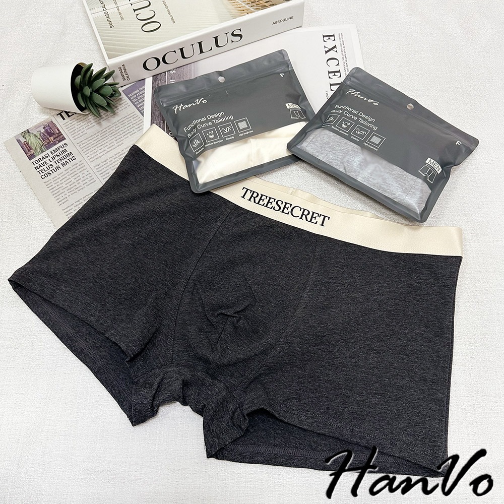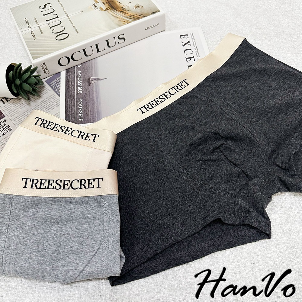 【HanVo】TREESECRET英文純棉內褲 簡約親膚柔軟中腰 獨立包裝 流行男款內褲 內著 B05-5061熔岩灰|雲霧灰|奶霜杏UnderwearHanVo Wear Collection