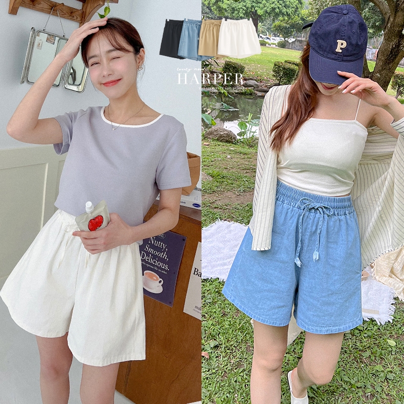【HARPER】不挑人百搭抽繩短褲 |現貨 短褲 休閒褲 白褲 百搭【PNB40817H】白,F|卡其,F|藍,F|黑,FHARPER