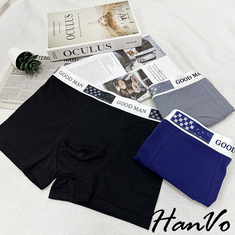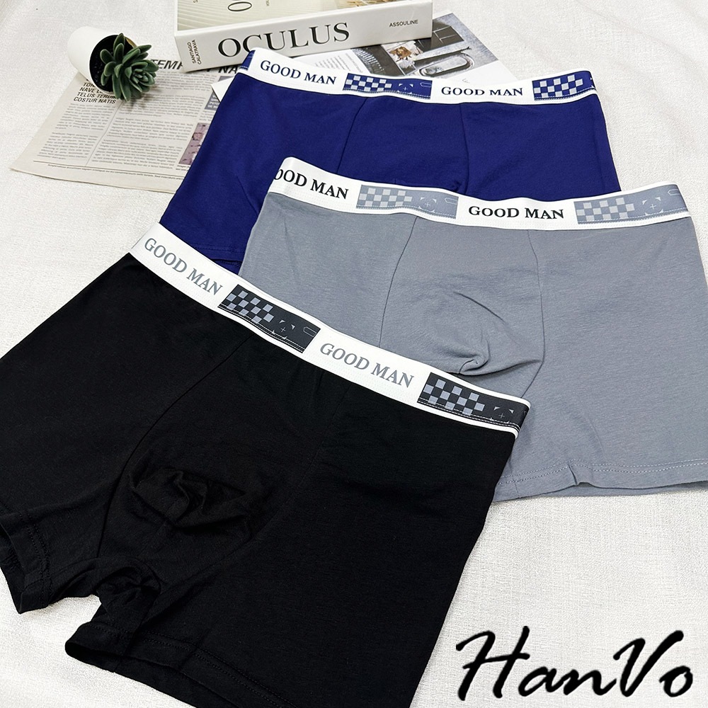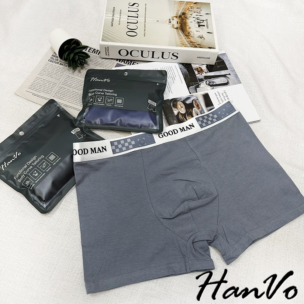 【HanVo】GOOD MAN字母質感純棉內褲 透氣吸濕排汗 彈性包覆 獨立包裝 流行男款內褲 內著 B05-5062森林黑|深海藍|岩石灰UnderwearHanVo Wear Collection
