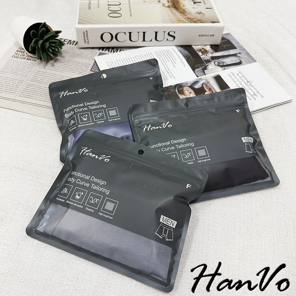 【HanVo】薄款緹花透氣冰絲內褲 輕薄涼感速乾 獨立包裝 流行男款內褲 內著 B05-5058沉穩藍|尊容灰|午夜黑UnderwearHanVo Wear Collection