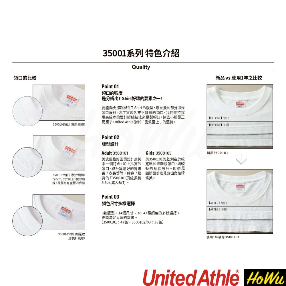免運【United Athle】日本頂級柔棉5.6oz.成人短T(5001-01) | Howu好物商城(UA素色T恤)