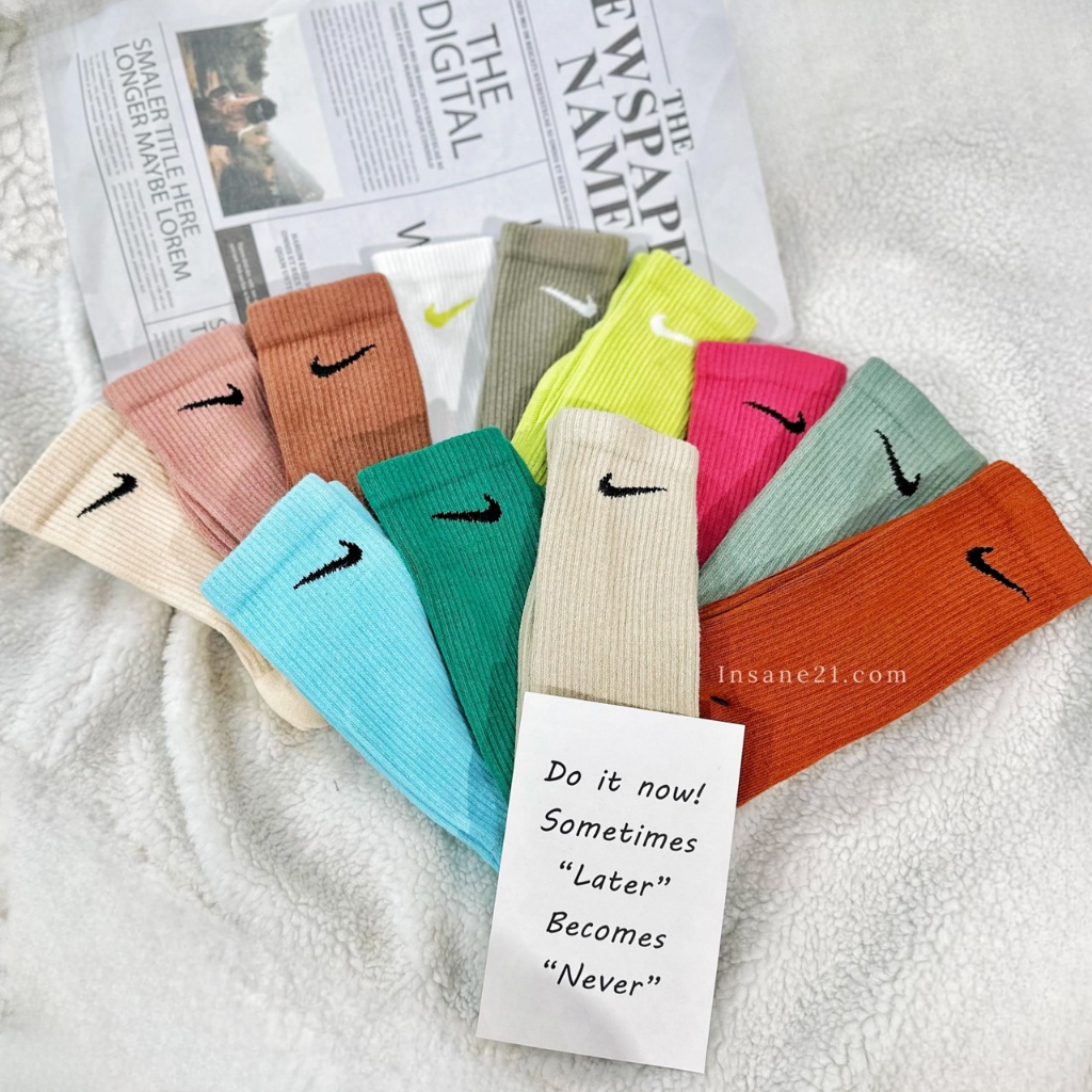 NIKE COTTON SOCKS 三色 大地 裸粉 繽紛 色系 男女尺寸 長襪 SWOOSH【Insane-21】
