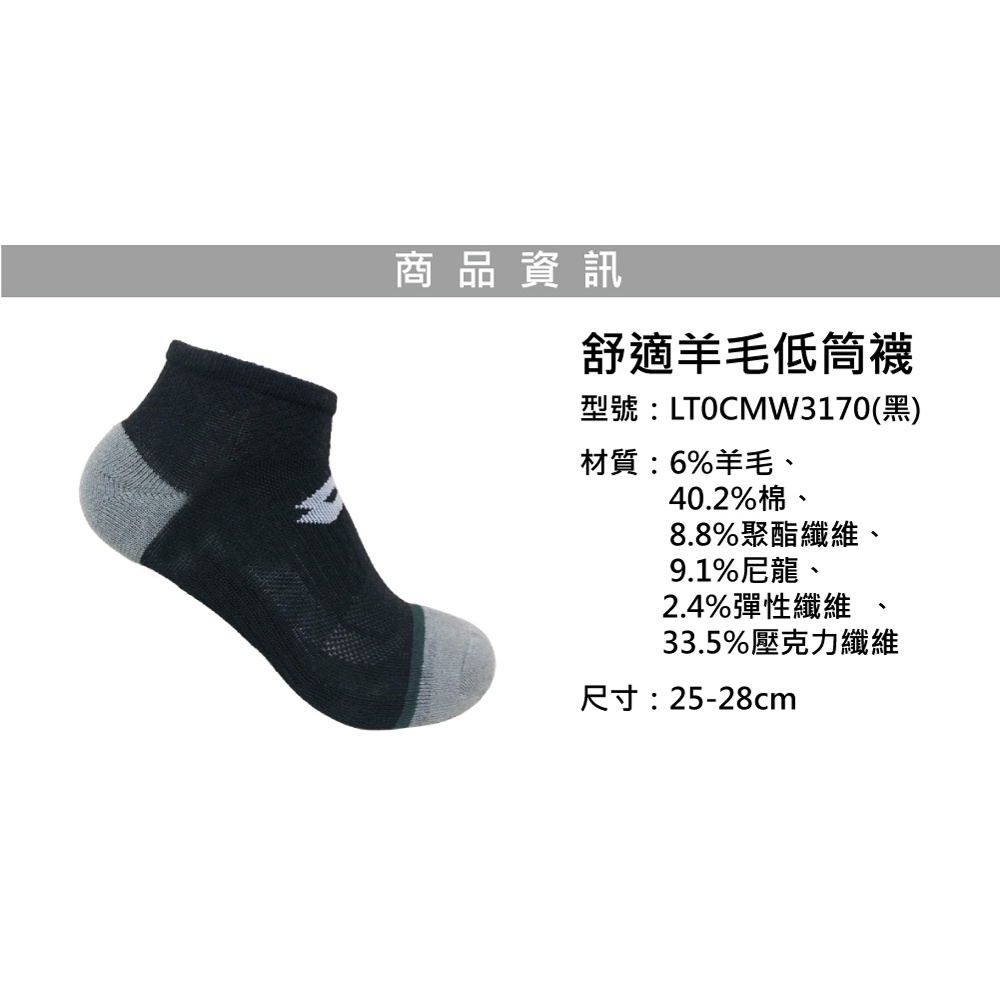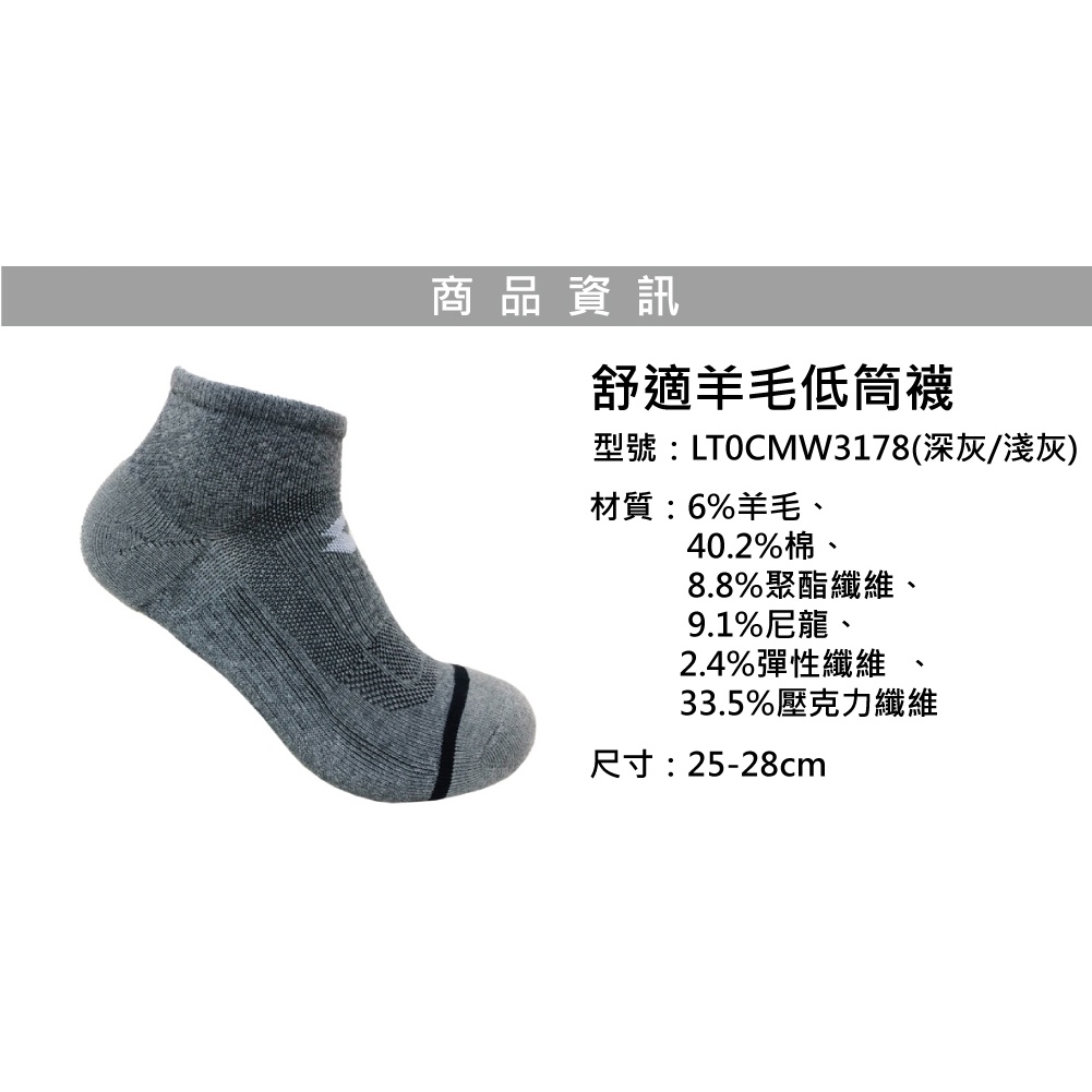 【LOTTO 義大利】舒適羊毛低筒襪25-28CM(三色任選)黑|墨綠/淺灰|深灰/淺灰LOTTO 樂得官方商城