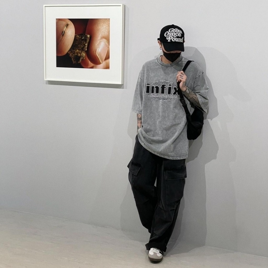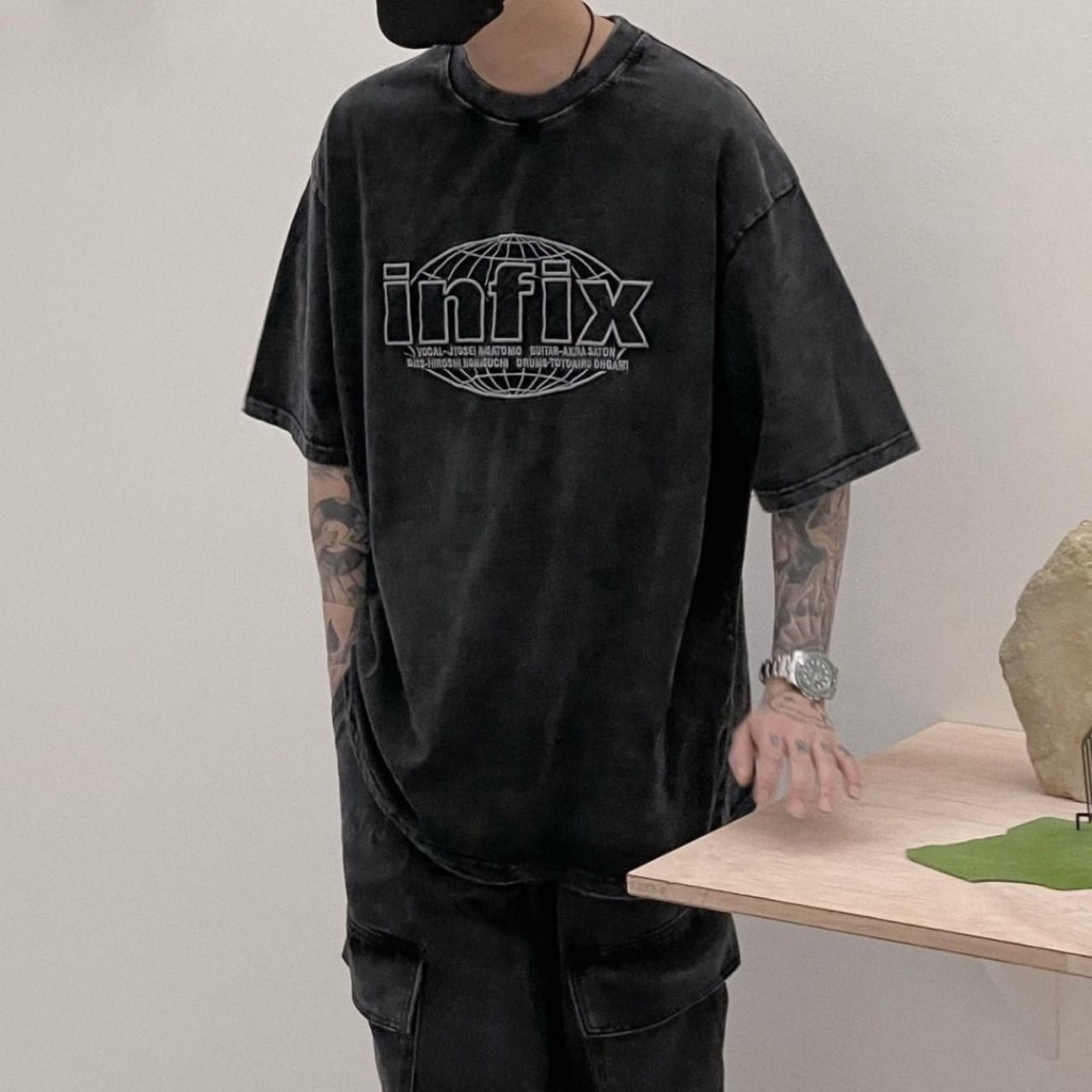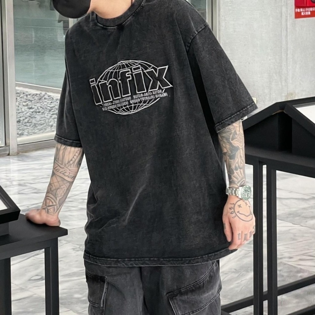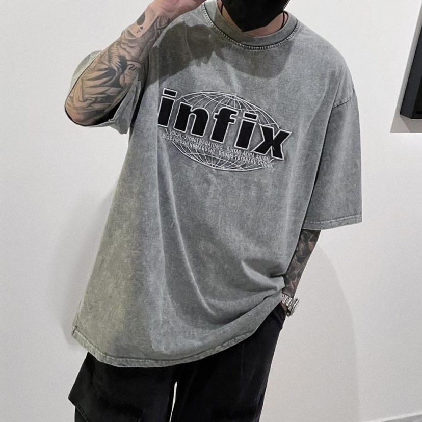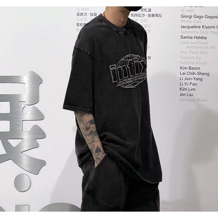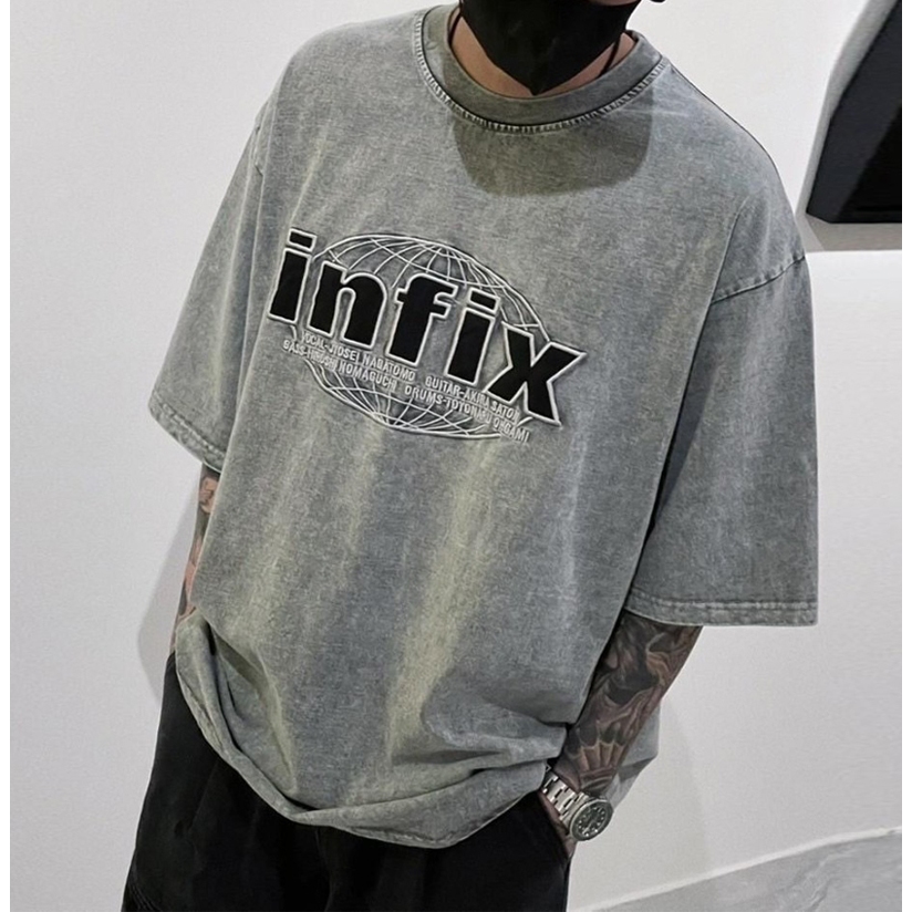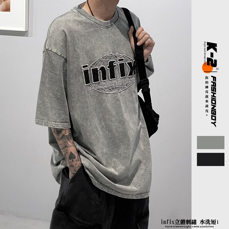 【K-2】infix 立體刺繡 水洗短t oversize 古著 水洗 寬鬆 短t 上衣 大尺碼 高品質【K2C54】灰色|黑色T-ShirtsK-2 Fashionboy