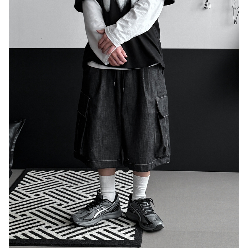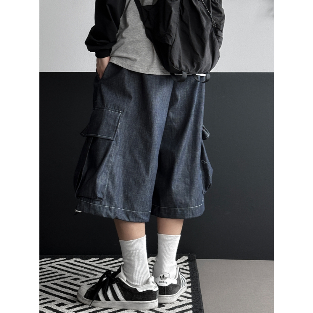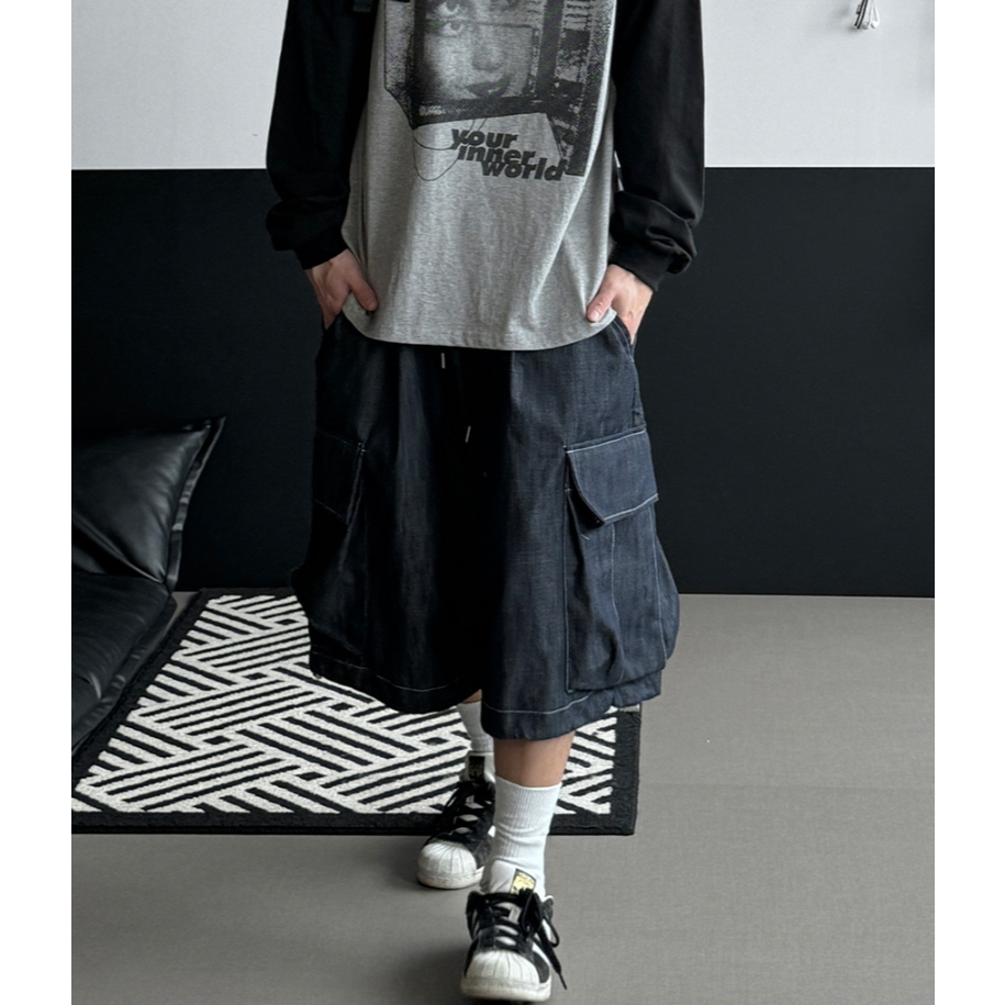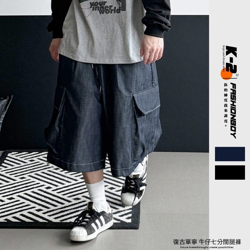 【K-2】日系穿搭 復古單寧 工裝大口袋 闊腿短褲 牛仔七分褲 牛仔短褲 工作褲 短褲 潮流短褲 Y2K【K2WP01】藍色,M|藍色,L|黑色,M|黑色,LK-2 Fashionboy