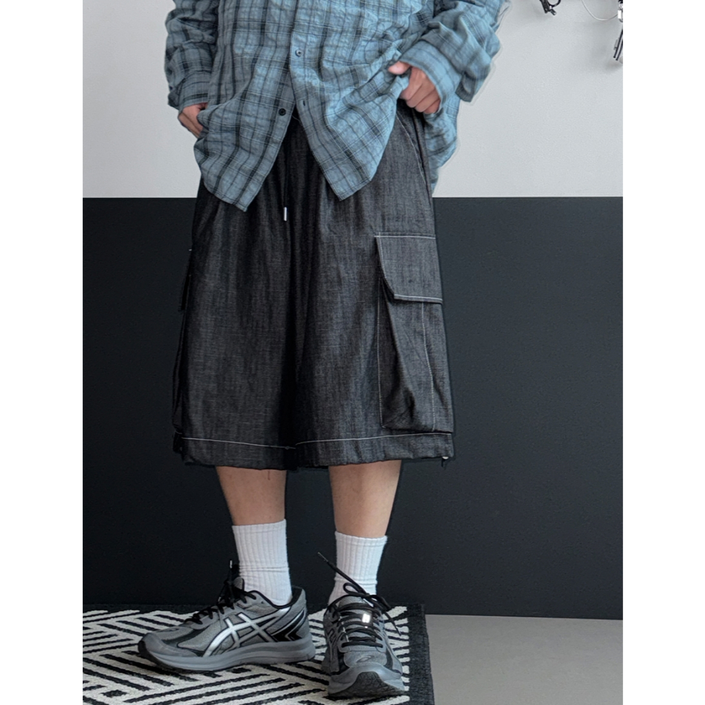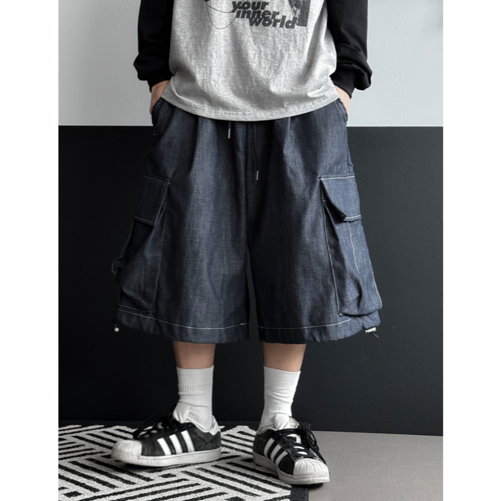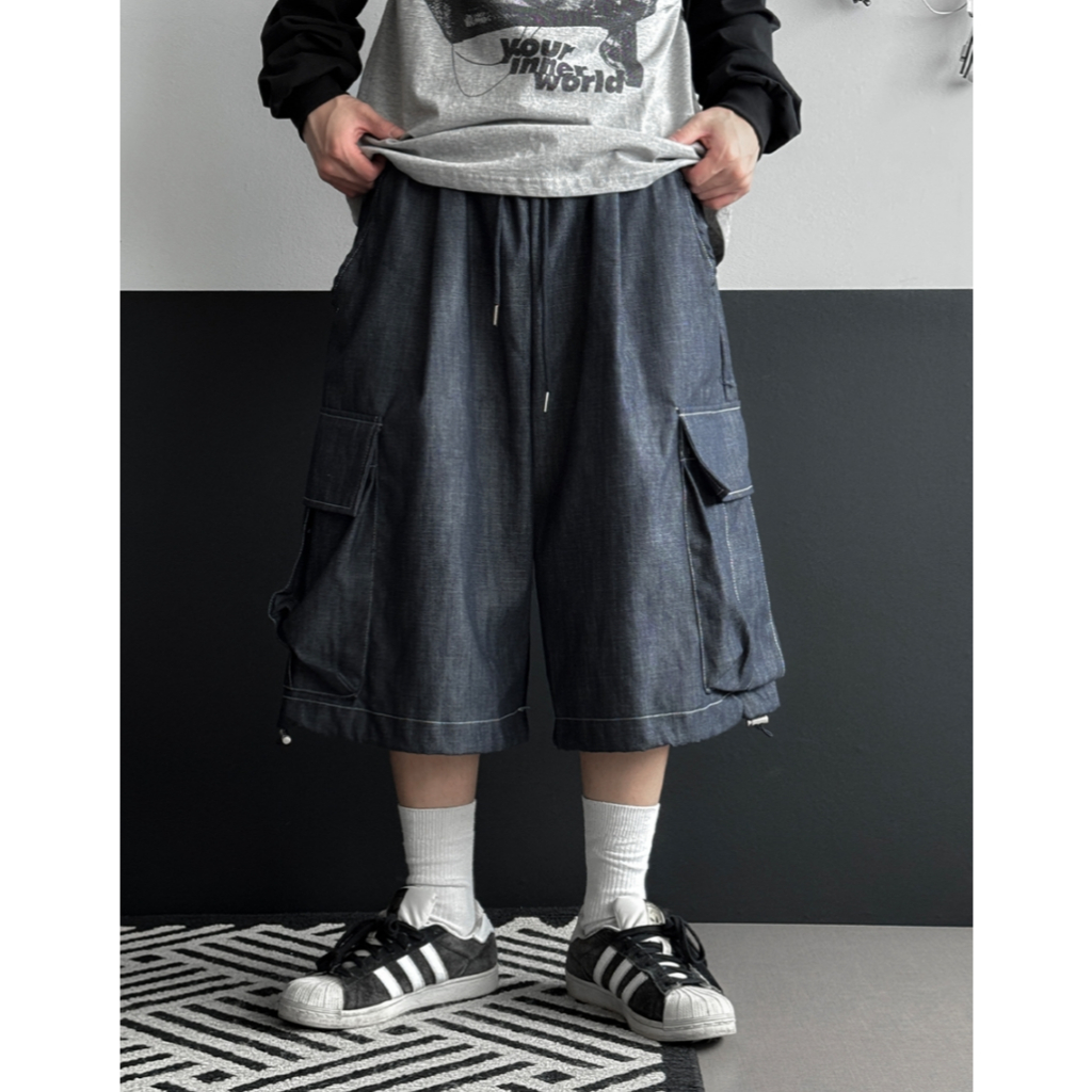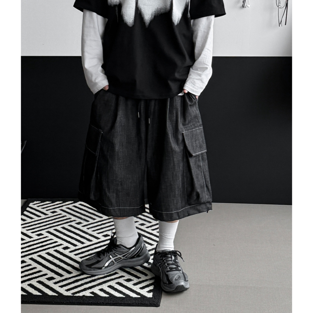 【K-2】日系穿搭 復古單寧 工裝大口袋 闊腿短褲 牛仔七分褲 牛仔短褲 工作褲 短褲 潮流短褲 Y2K【K2WP01】藍色,M|藍色,L|黑色,M|黑色,LK-2 Fashionboy