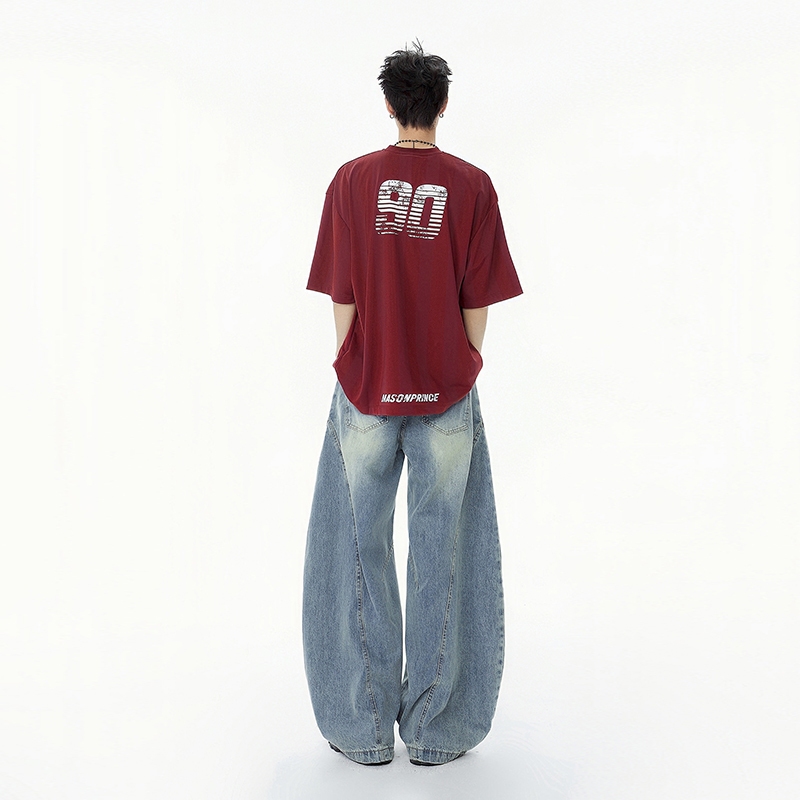 【K-2】美式復古 解構分割 牛仔寬褲 彎刀褲 小破壞 牛仔褲 寬褲 牛仔彎刀褲 水洗 長褲 闊腿褲 K2【J7617】M|L|XL|XXLK-2 Fashionboy
