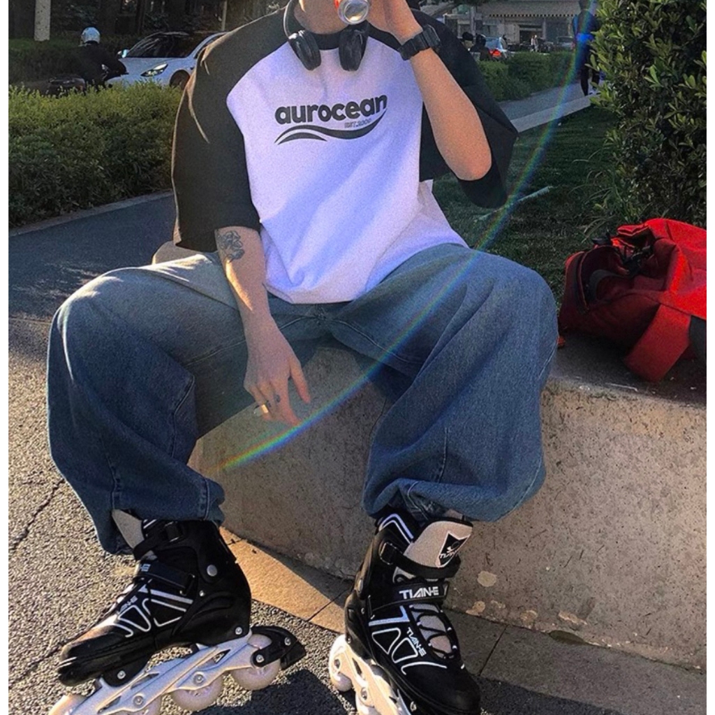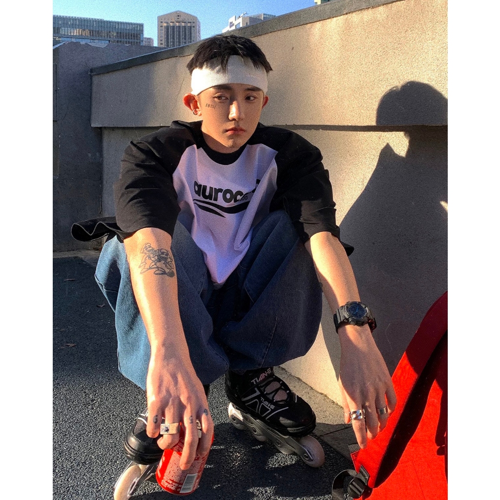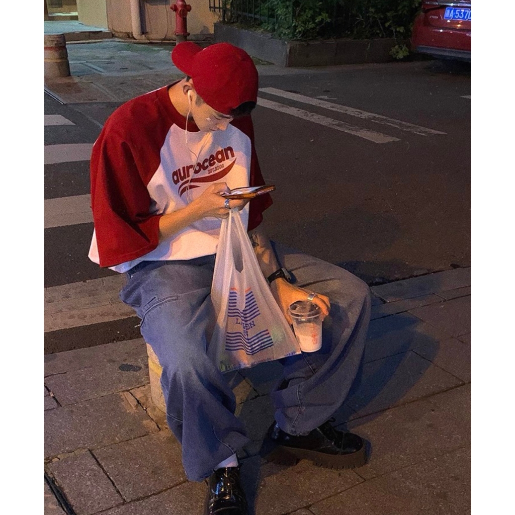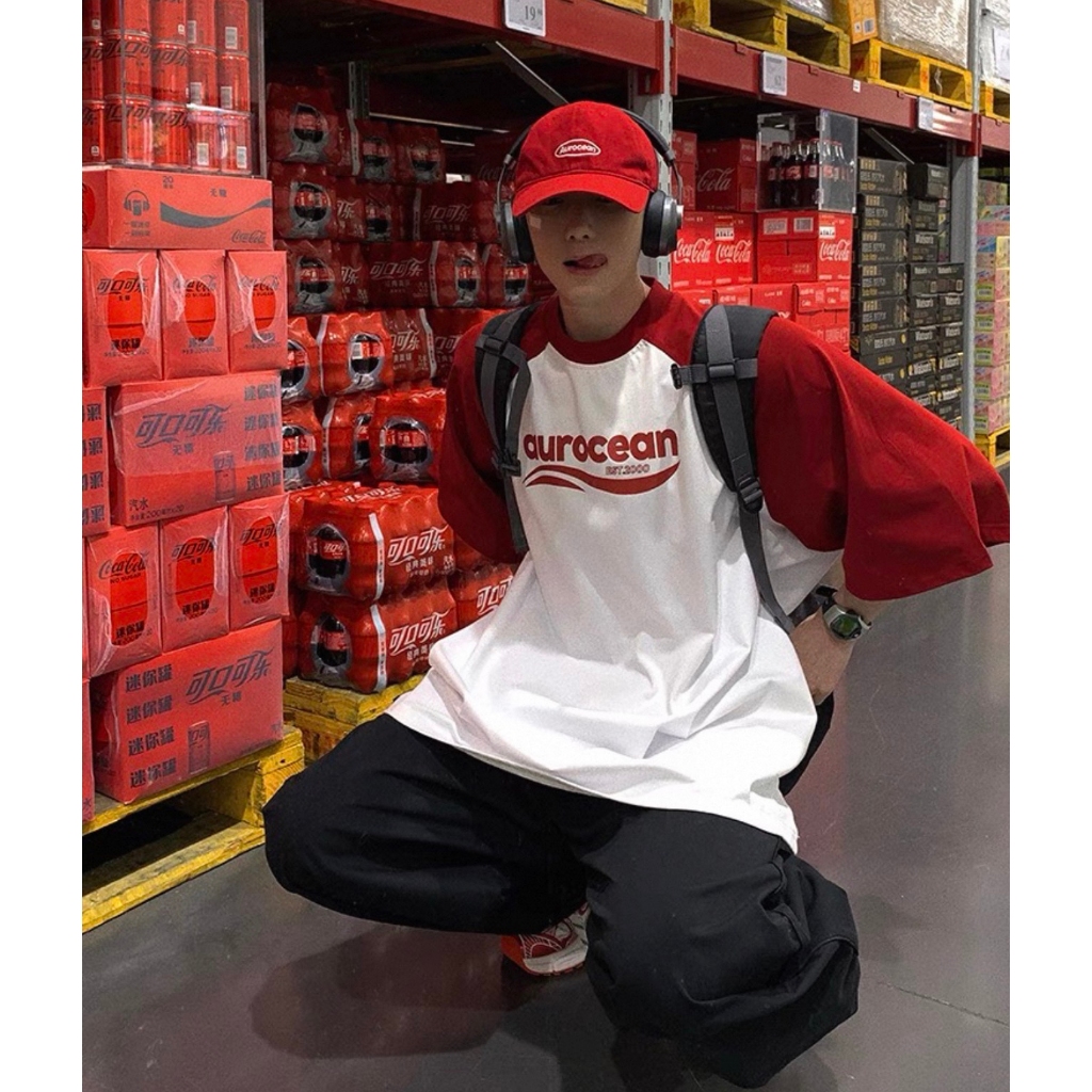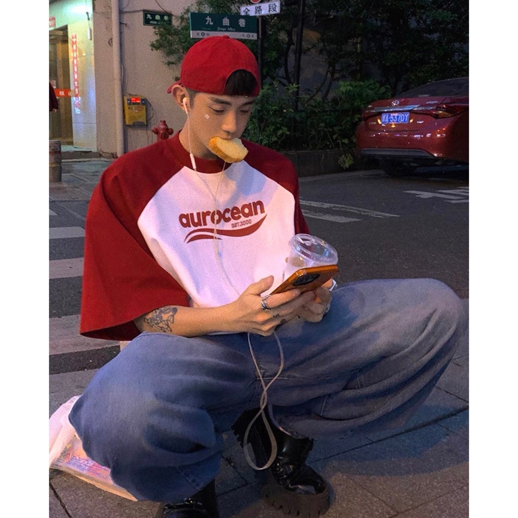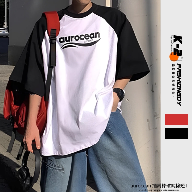 【K-2】aurocean 美式休閒 棒球短T 純棉短T 插肩 英文 LOGO 純棉 休閒短T 撞色 短袖【KN36】紅白色,M|紅白色,L|黑白色,M|黑白色,LT-ShirtsK-2 Fashionboy