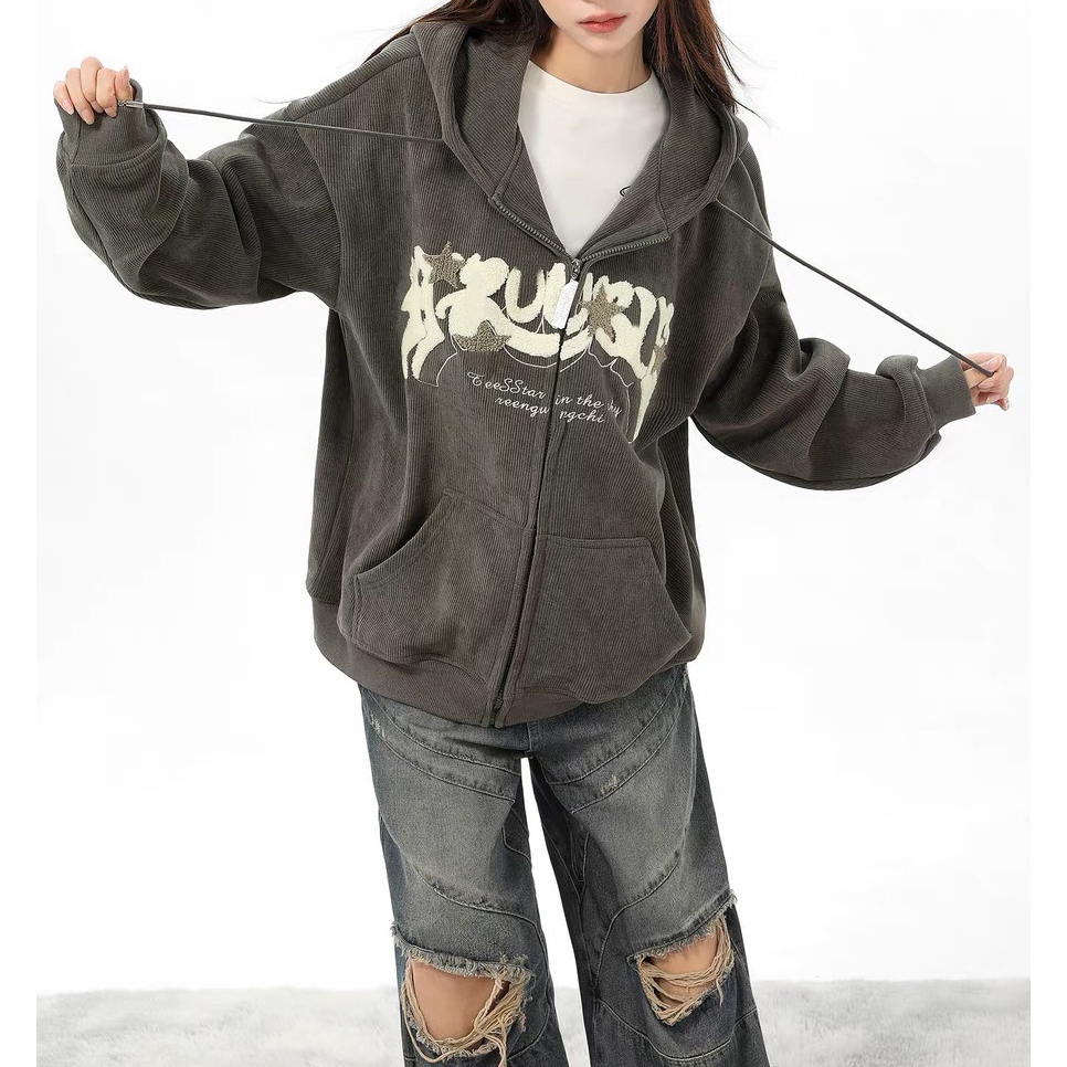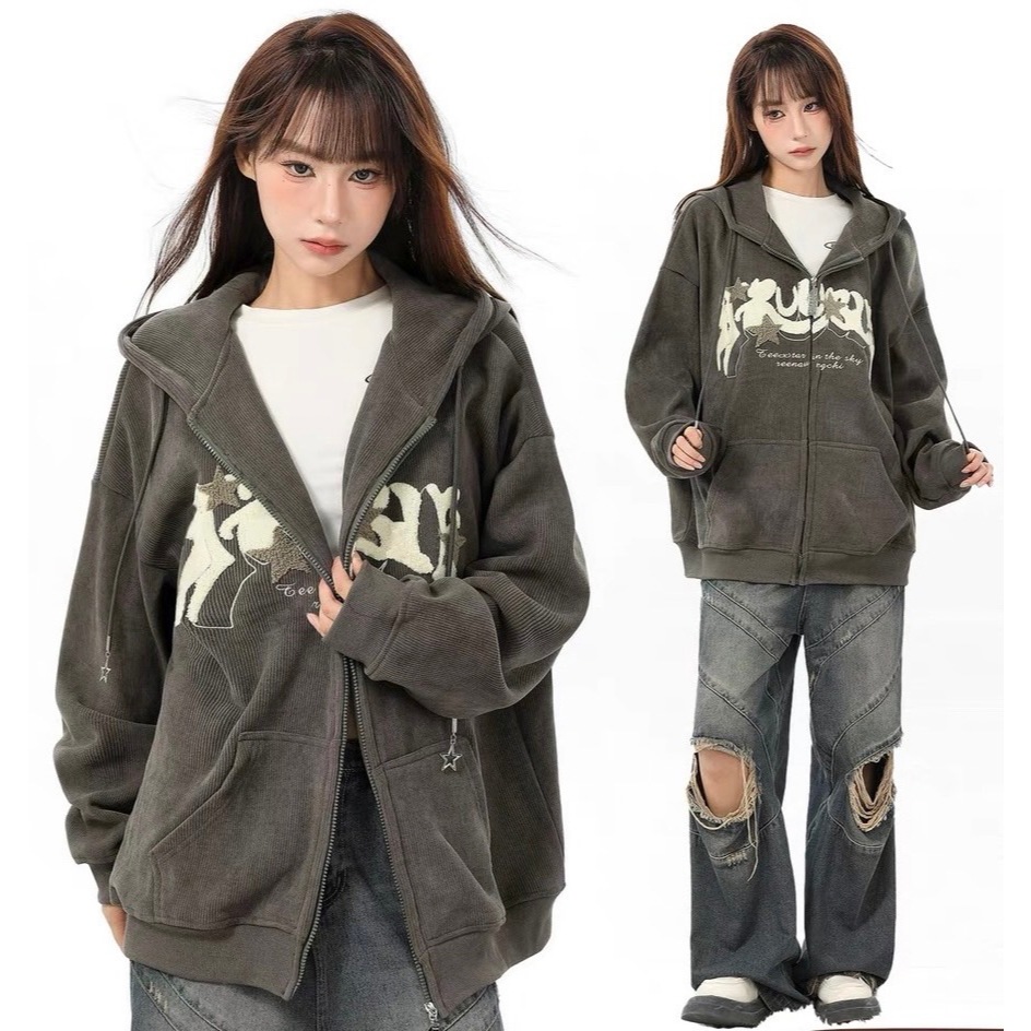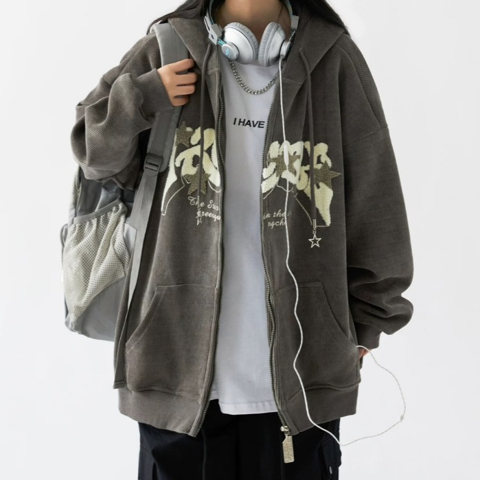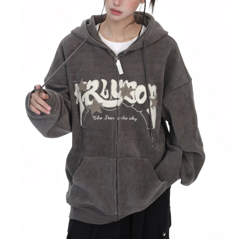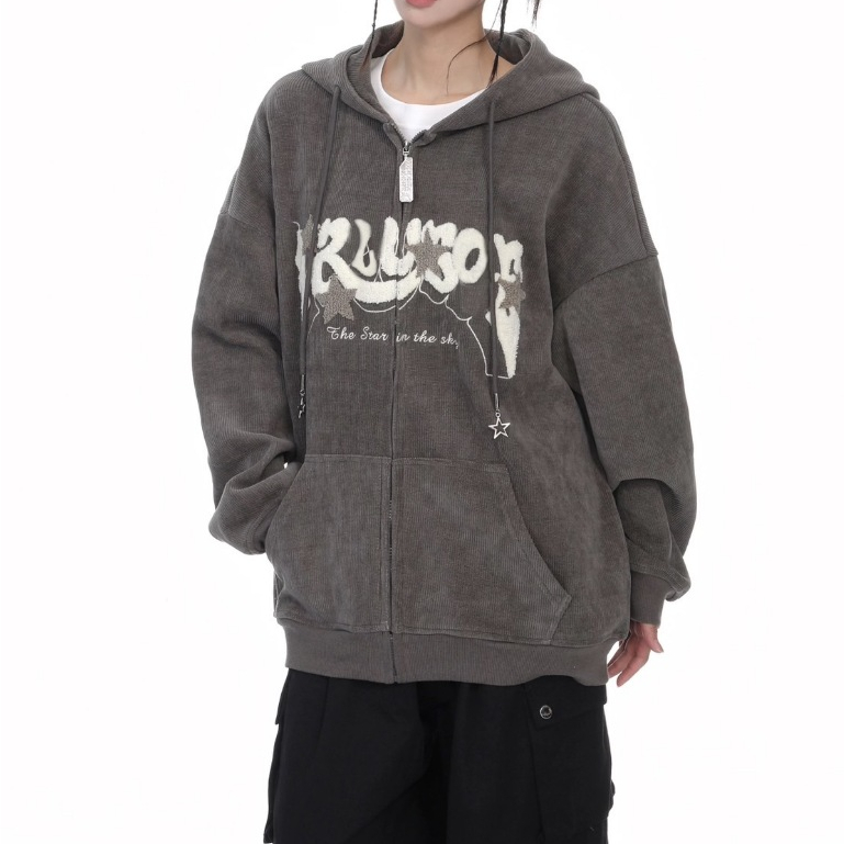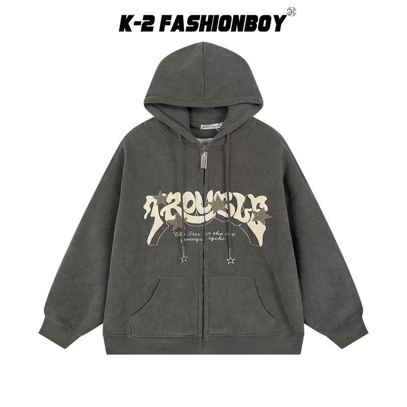 【K-2】TROUSLE 美式 重磅 立體絨布 星星 燈芯絨外套 連帽外套 穿搭 情侶 細節 外套 寬鬆【HW14】深灰,M|深灰,L|深灰,XLJacketsK-2 Fashionboy