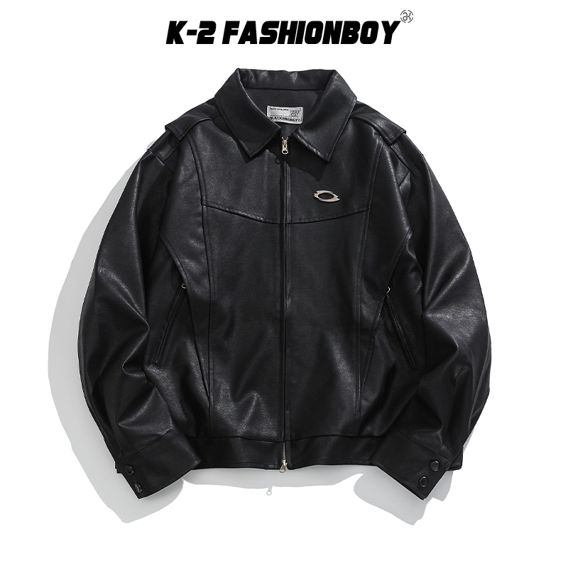 【K-2】幾何 剪裁 壓線 設計 皮革外套 質感 皮外套 男女不拘 素面 穿搭 個性 夜店【HBC495】M|L|XLJacketsK-2 Fashionboy