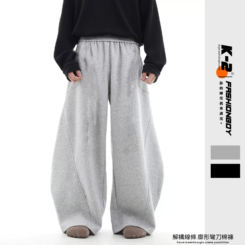 【K-2】cleanfit 解構線條 廓形 彎刀棉褲 巨大 彎刀褲 棉寬褲 大尺碼 棉褲 寬褲 闊腿褲 長褲【KC49】灰色,M|灰色,L|灰色,XL|黑色,M|黑色,L|黑色,XLPantsK-2 Fashionboy