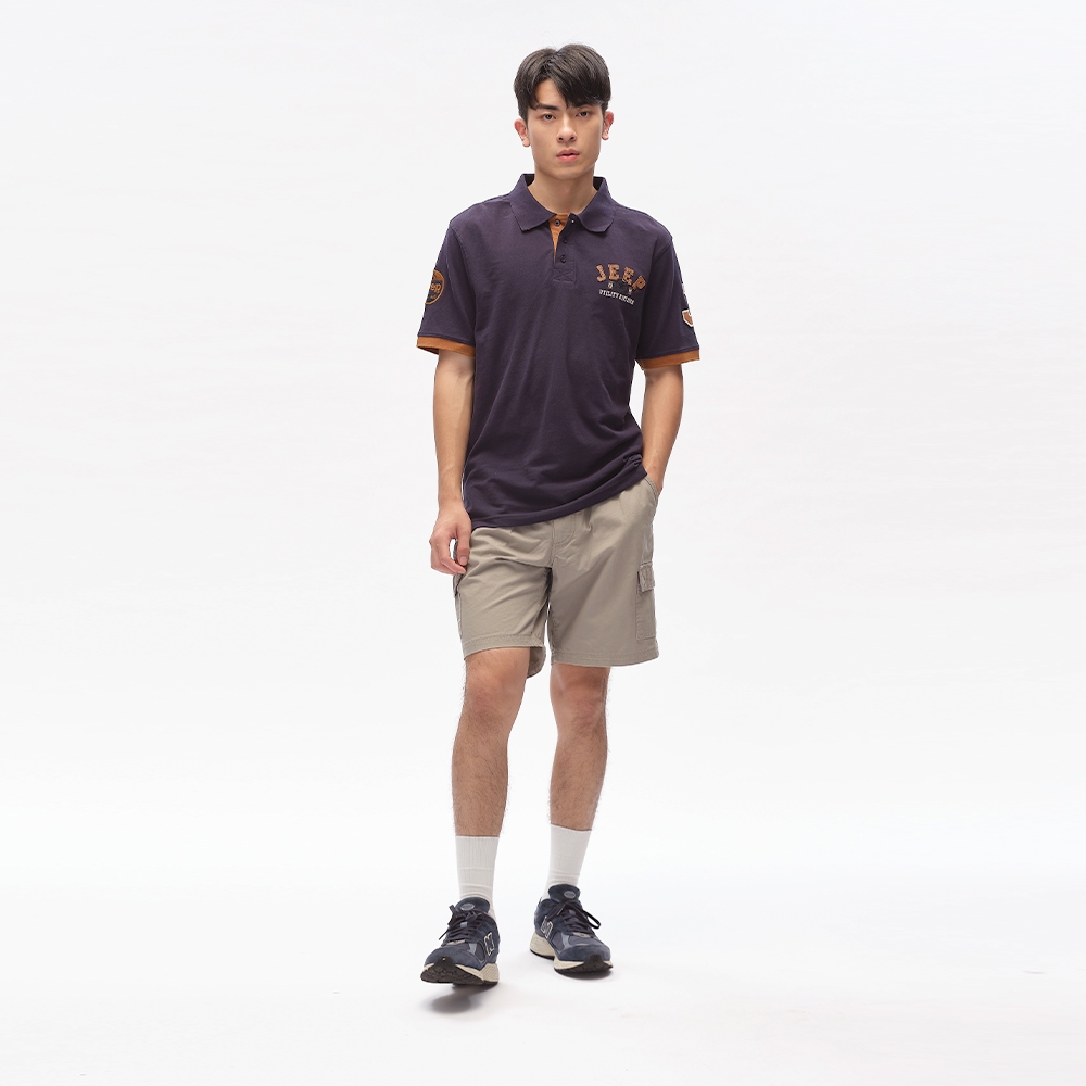 JEEP 男裝 鬆緊口袋工作短褲-卡其色