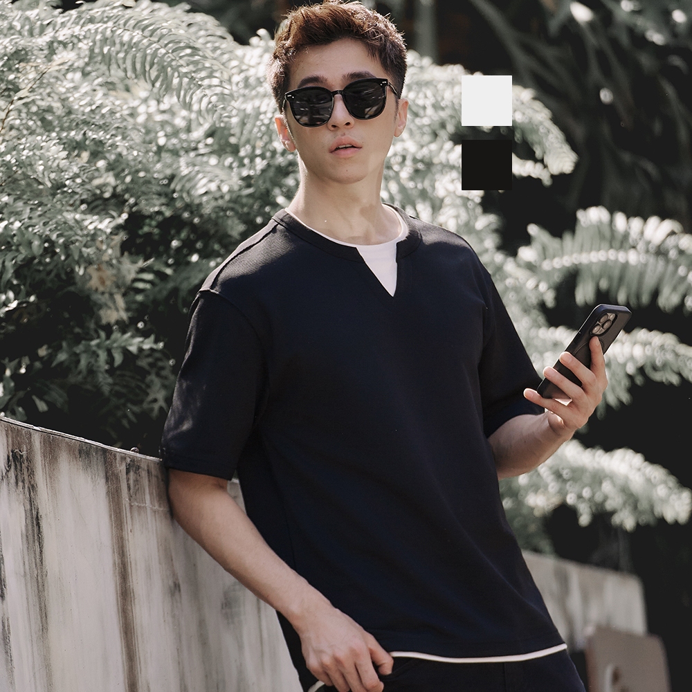 JERSCY [假兩件開襟造型短袖TEE] t恤 短袖t恤 上衣 男生衣服 [1510005]白色,S|白色,M|白色,L|白色,XL|白色,XXL|黑色,S|黑色,M|黑色,L|黑色,XL|黑色,XXLT-ShirtsJERSCY 極簡風格男裝