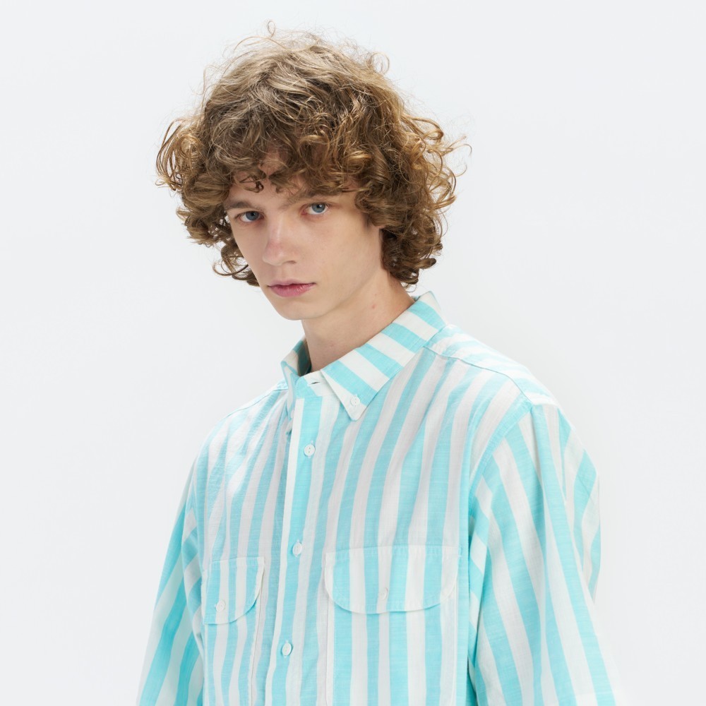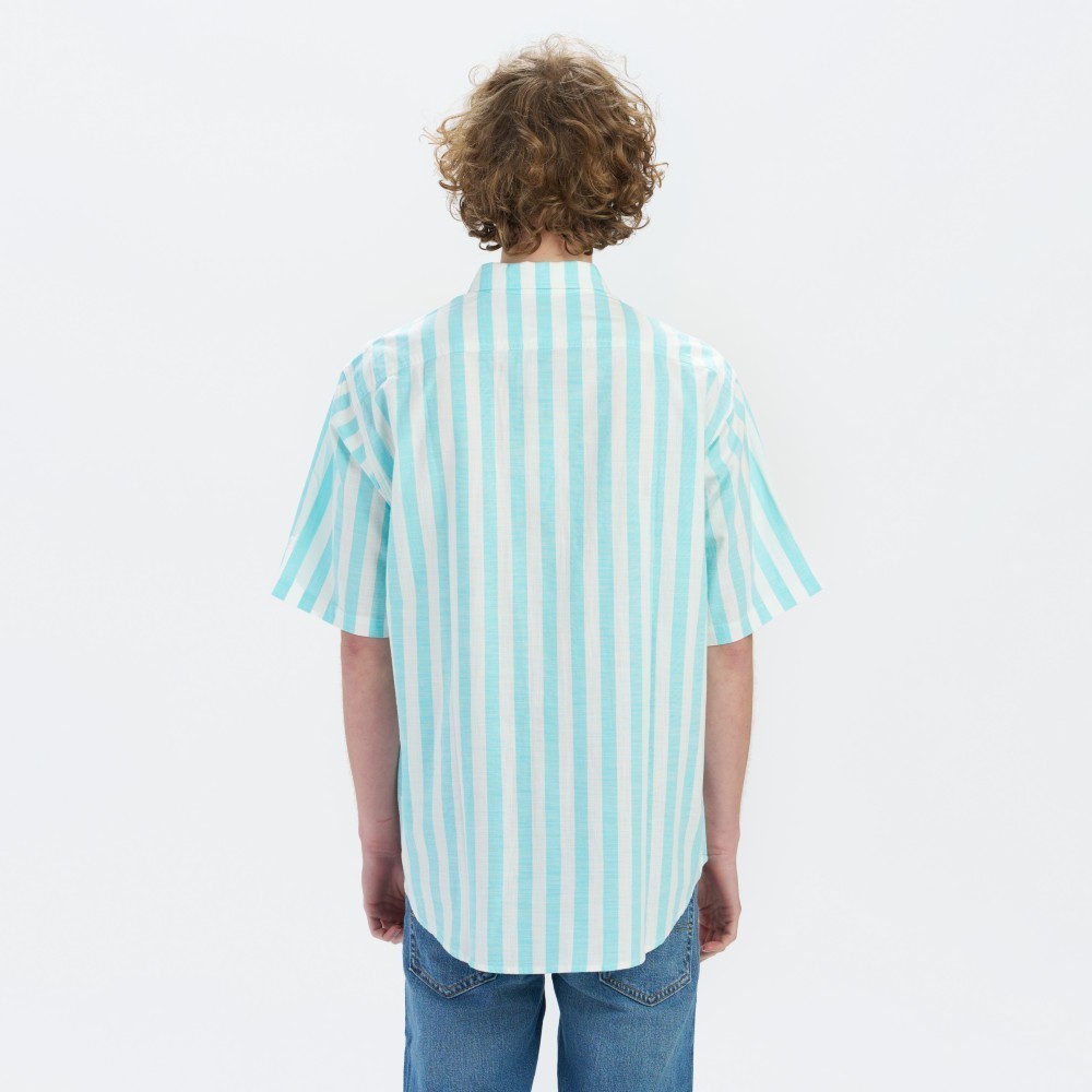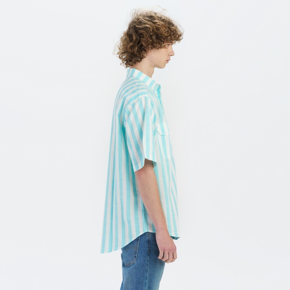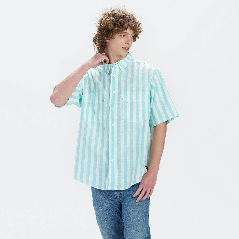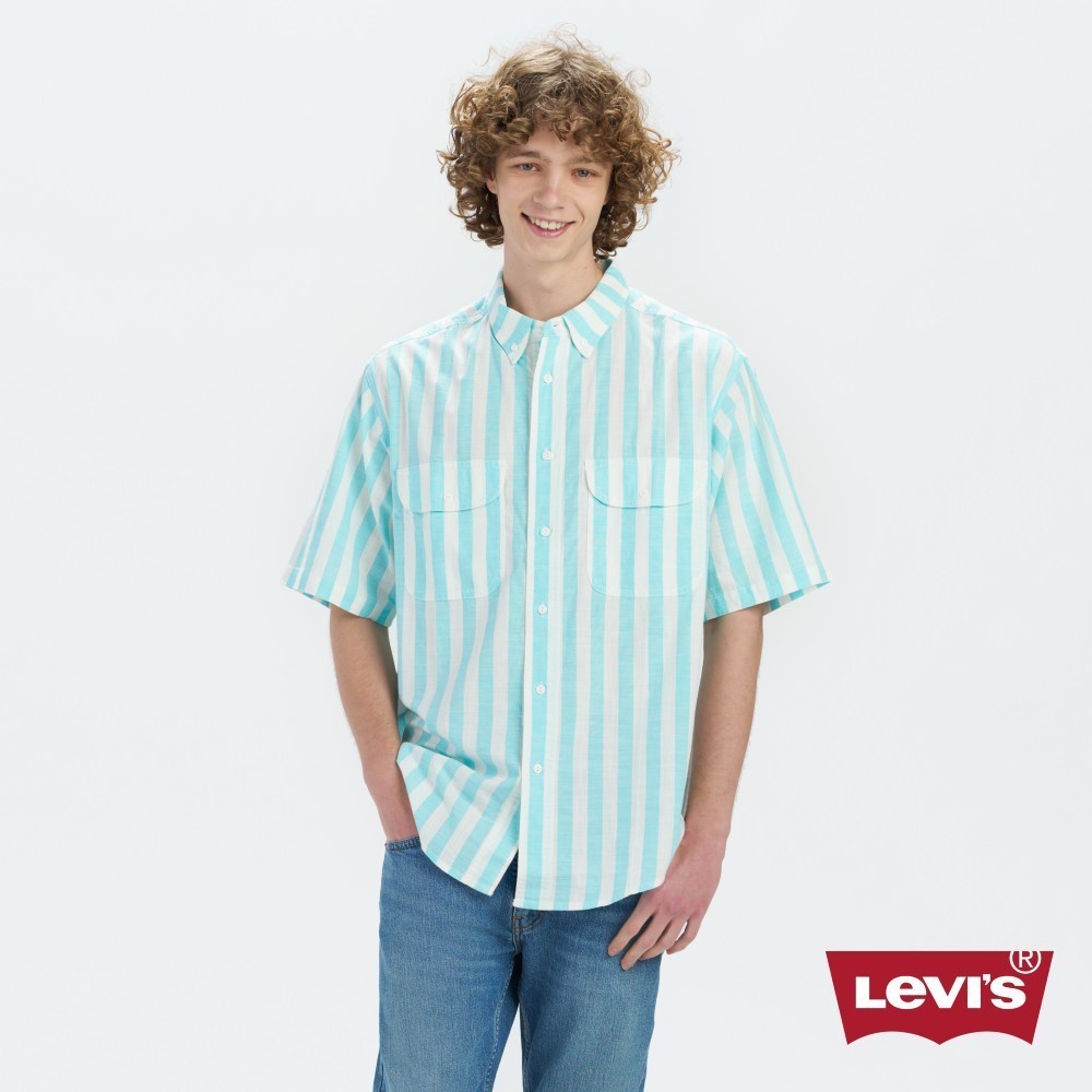 Levis 滑板系列 男女同款 街頭寬鬆版短袖條紋襯衫 熱賣單品 A4329-0000XS|S|M|L|XLShirtsLevi’s官方旗艦店