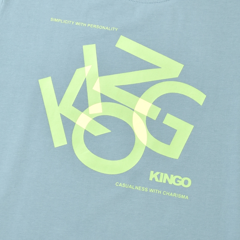 KINGO男款|灰藍色印花T恤 411141|官方直營
