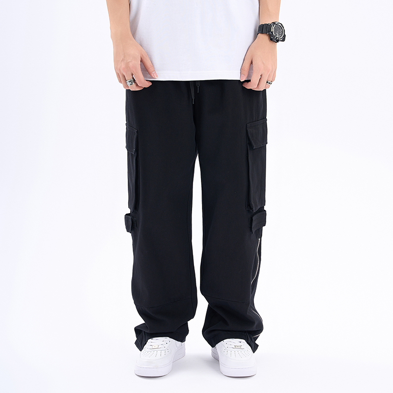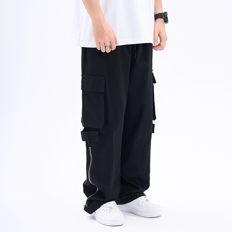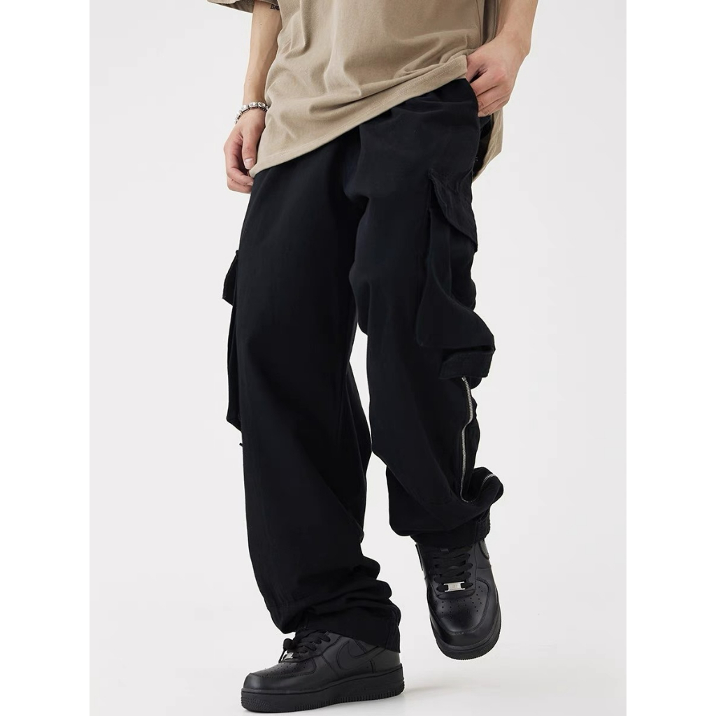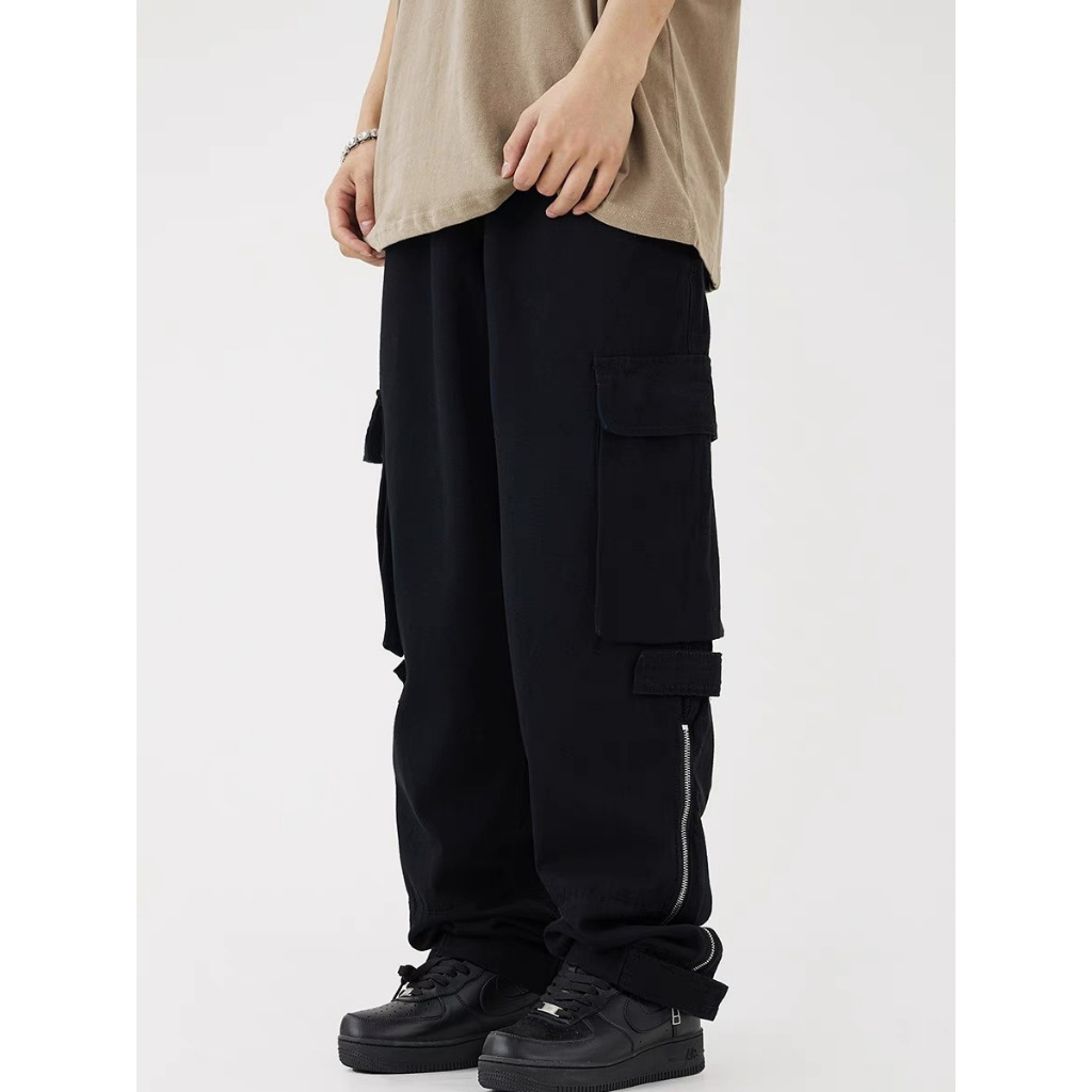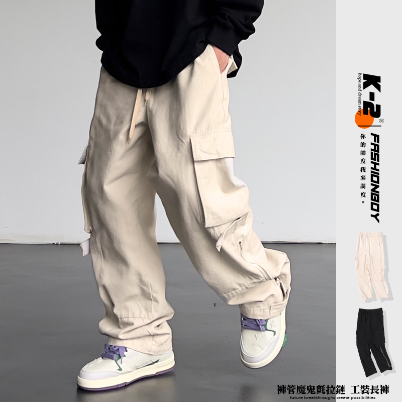 【K-2】褲管 魔鬼氈 拉鍊 設計 工裝 長褲 直筒寬褲 工作褲 街頭 BOY 復古風 落地褲【A3217】杏色,XL|杏色,XXL|黑色,M|黑色,L|黑色,XL|黑色,XXL|杏色,M|杏色,LCargoK-2 Fashionboy