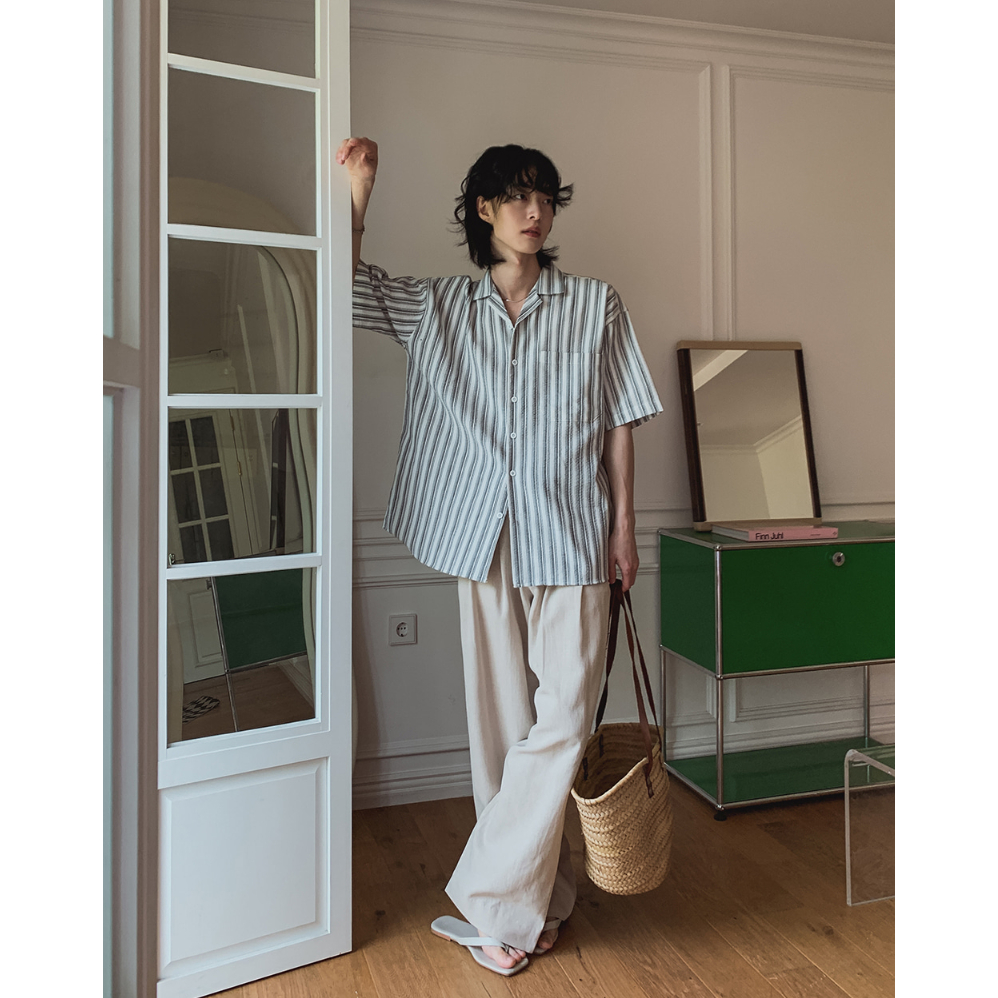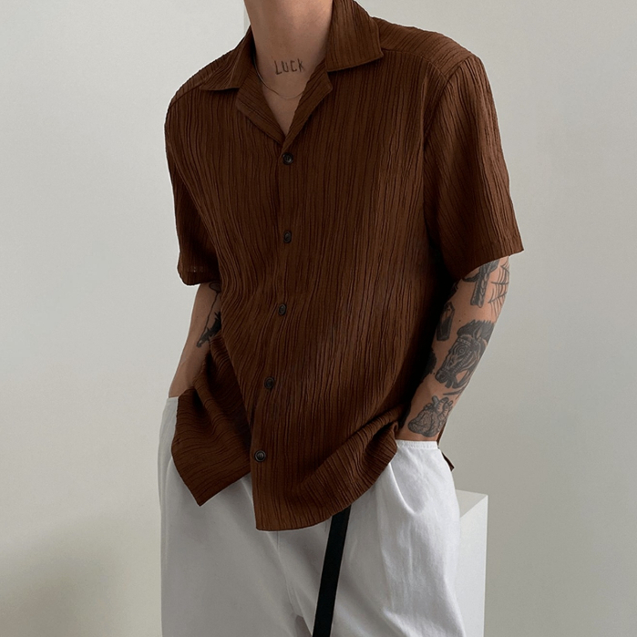 【Metanoia】 🇰🇷韓製 古巴領百褶短袖襯衫 | 順利約3-7天內出貨黑色,F|棕色,F|象牙色,FShirtsMetanoia 正韓服飾 & MdoC 總代理
