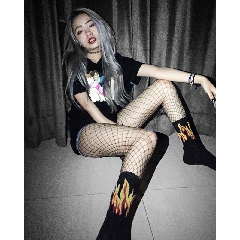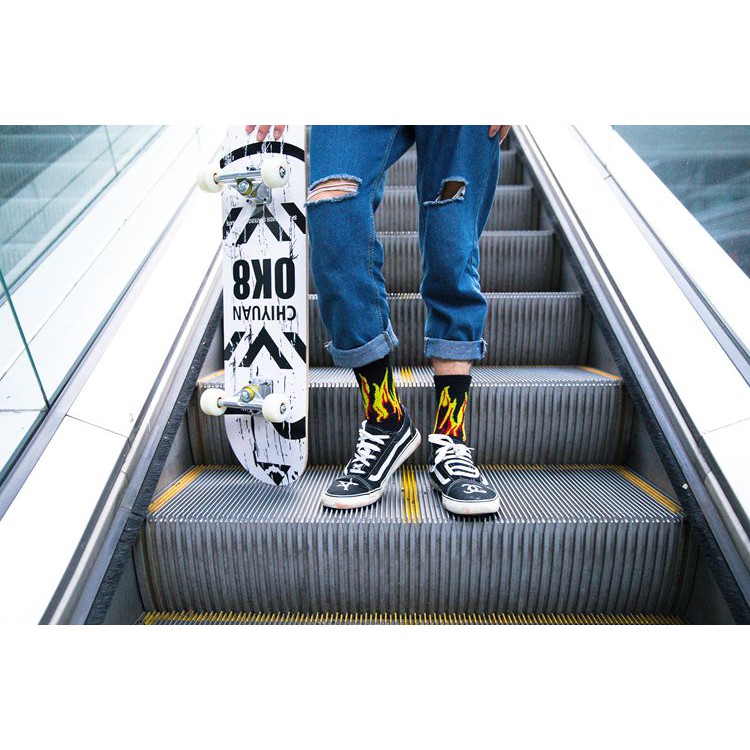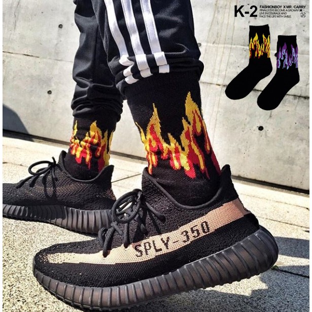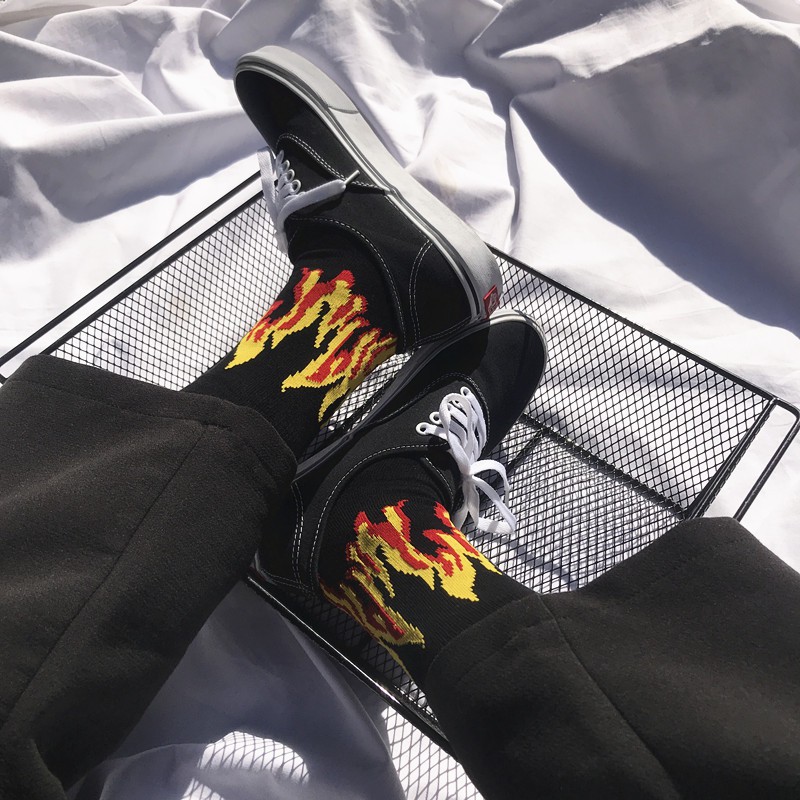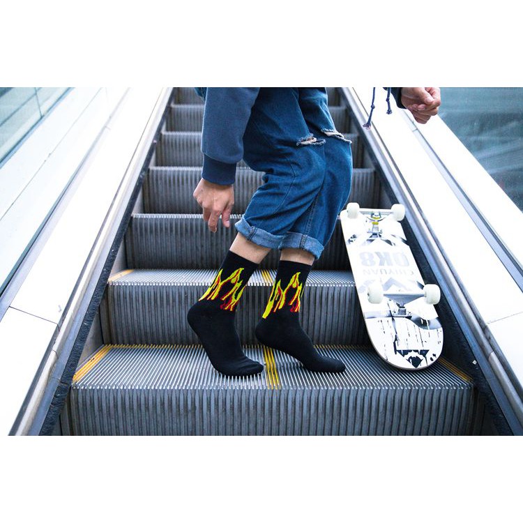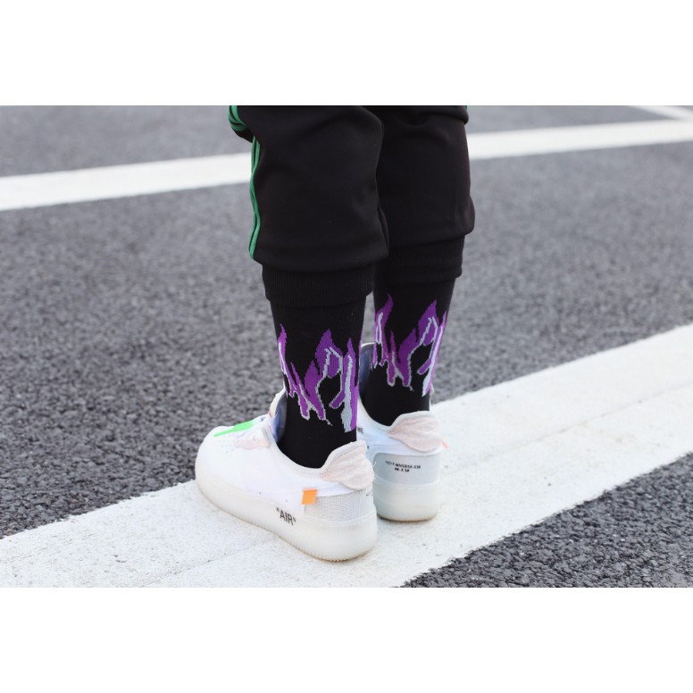 高統火焰襪 燒一波 長襪 高筒襪 火焰 穿搭 搭配 襪子【K076】黃火|紫火K-2 Fashionboy