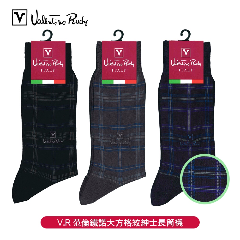 [ Valentino Rudy 范倫鐵諾 ] 大方格紋紳士長筒襪 襪子 長襪 男襪 義大利 VR11010黑|深灰|深藍MEY 智誠|男性內著旗艦店