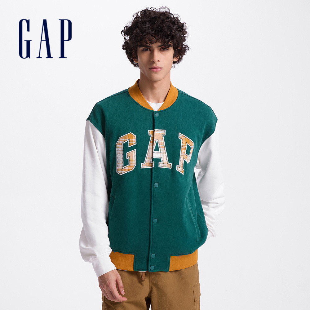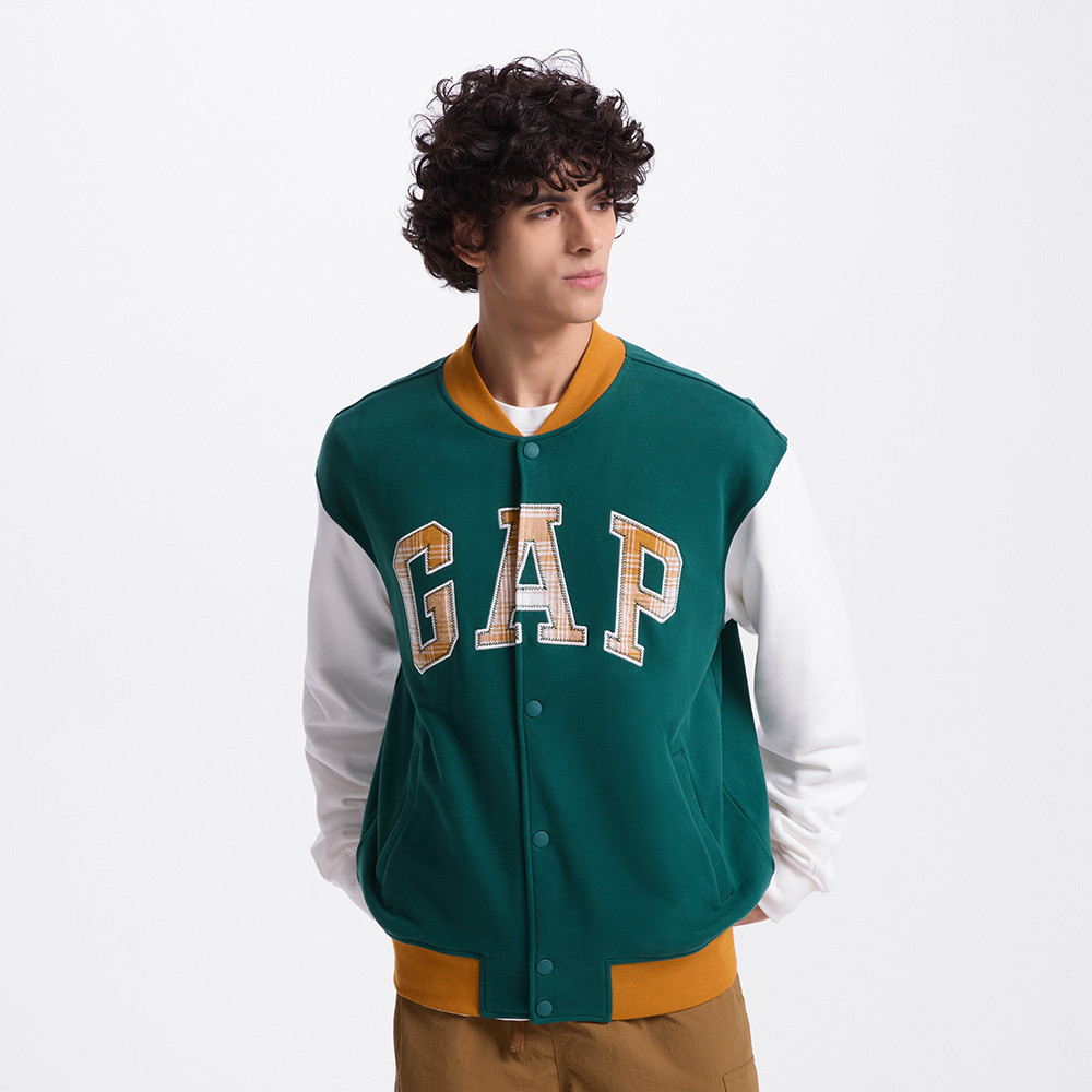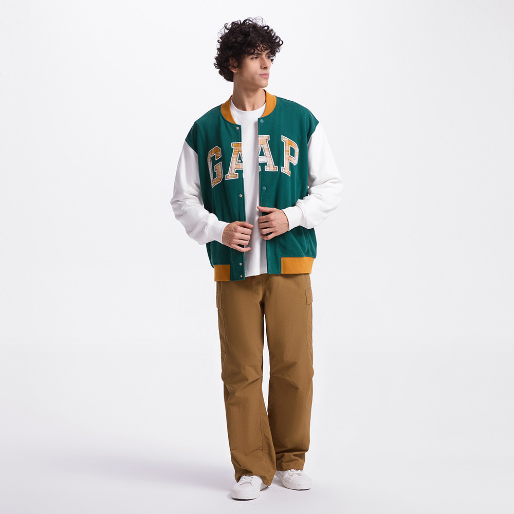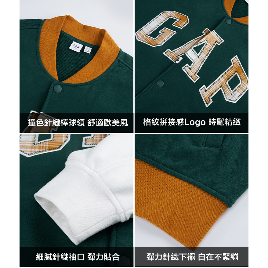 Gap 男裝 Logo刺繡立領棒球外套 碳素軟磨法式圈織系列-綠色(639207)L|XL|XXL|XXXL|S|MJacketsGap官方旗艦店